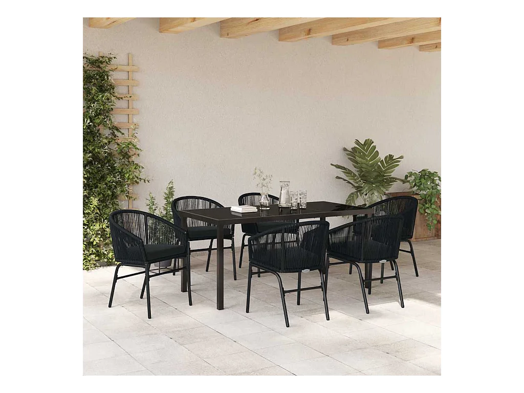 Ensemble de Salle à Manger de Jardin 7 Pièces avec Coussins - Rattan Poly Noir