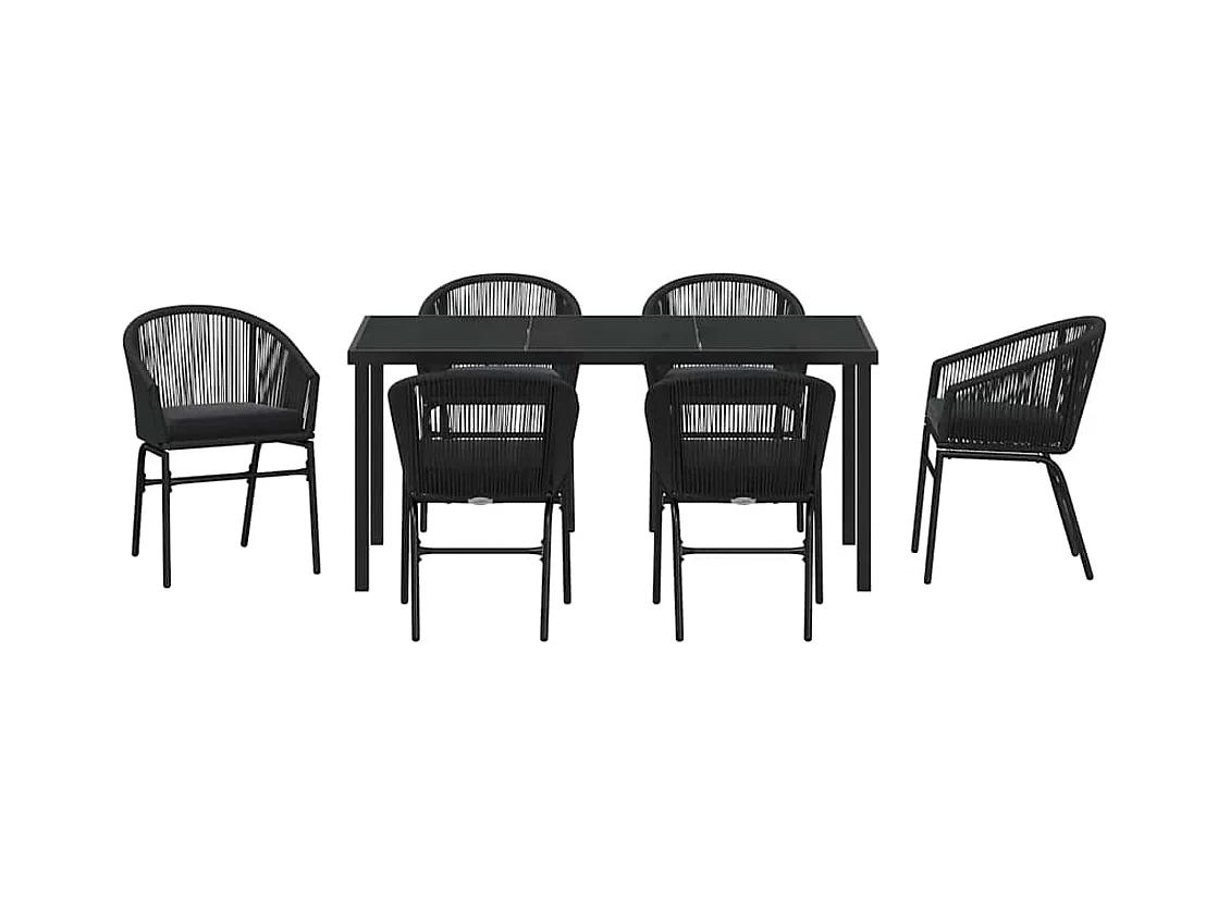 Ensemble de Salle à Manger de Jardin 7 Pièces Noir Rattan Poly
