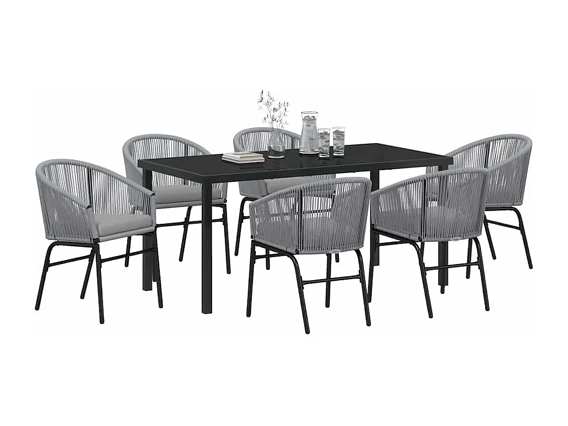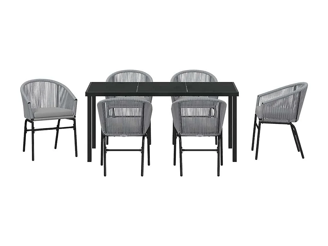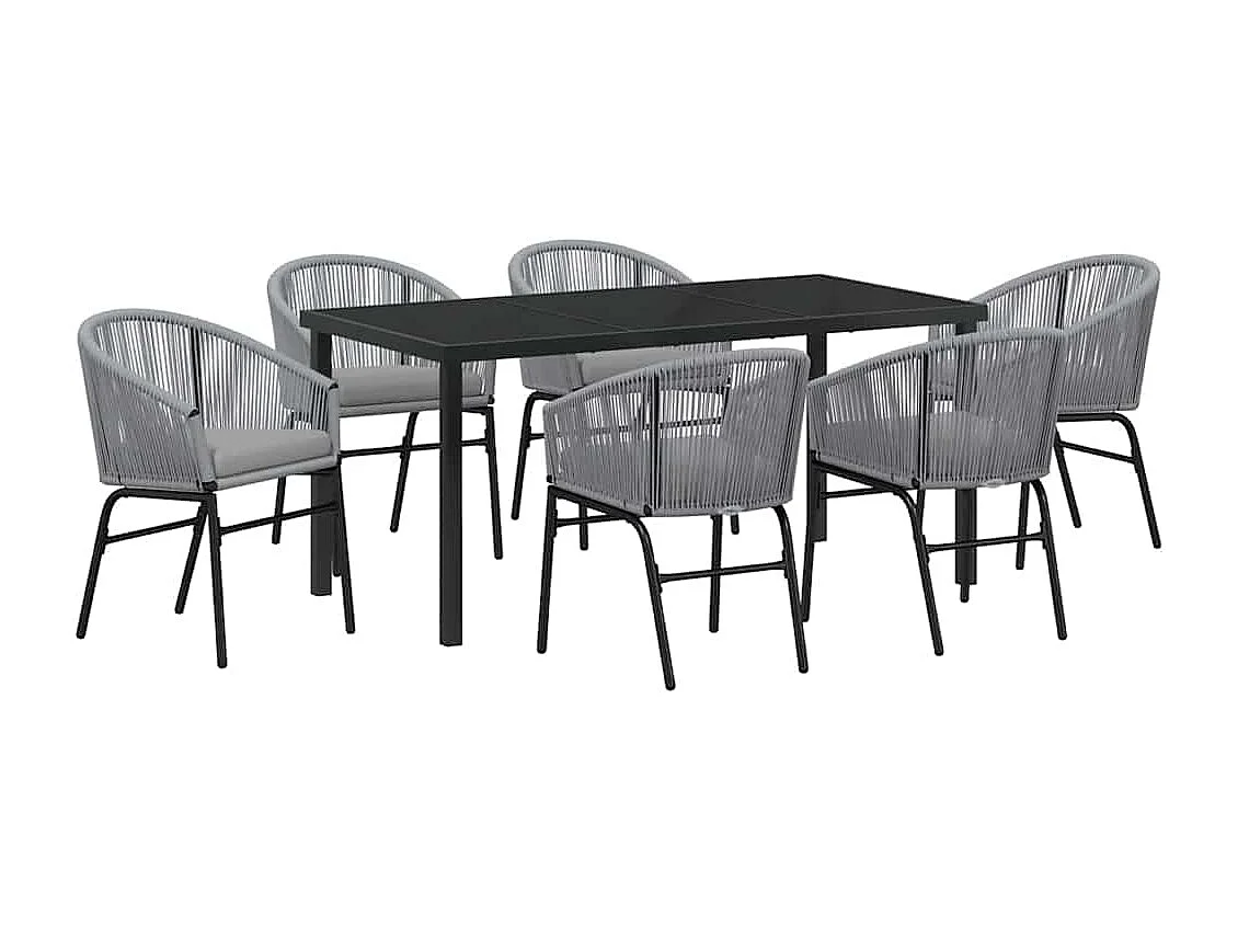 Set de salle à manger de jardin 7 pièces - Rotin poly gris