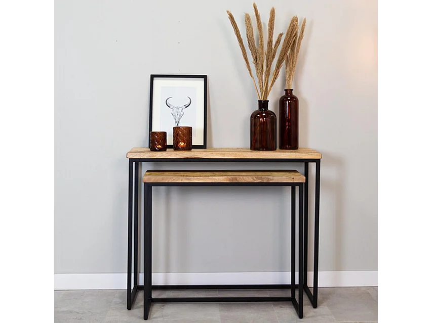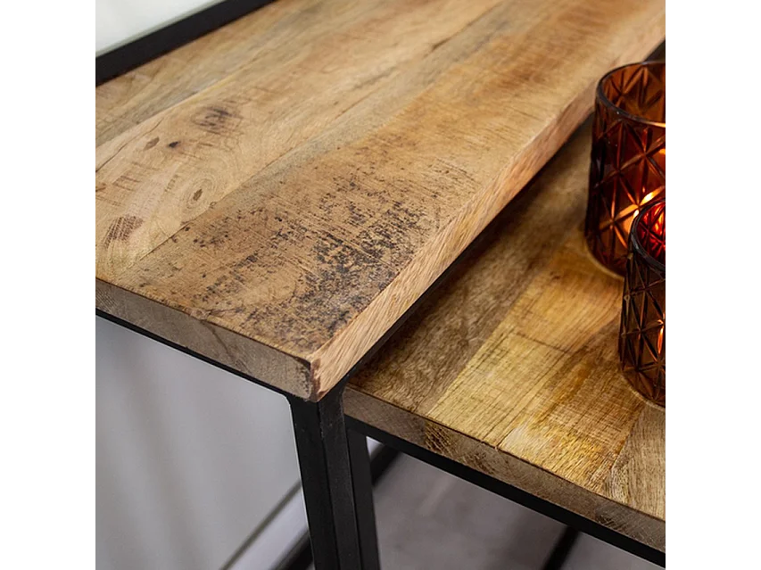 Set de tables d'appoint - Bois de manguier naturel - Métal noir - 2 pièces