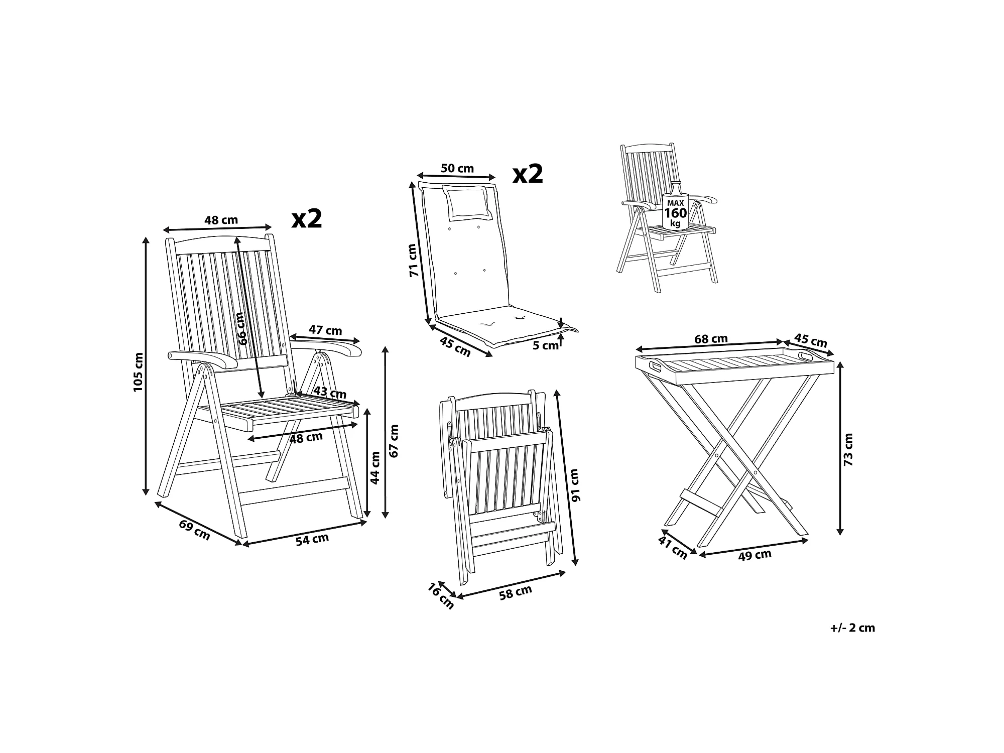 Ensemble pour bistro avec coussin Bois Taupe TOSCANA