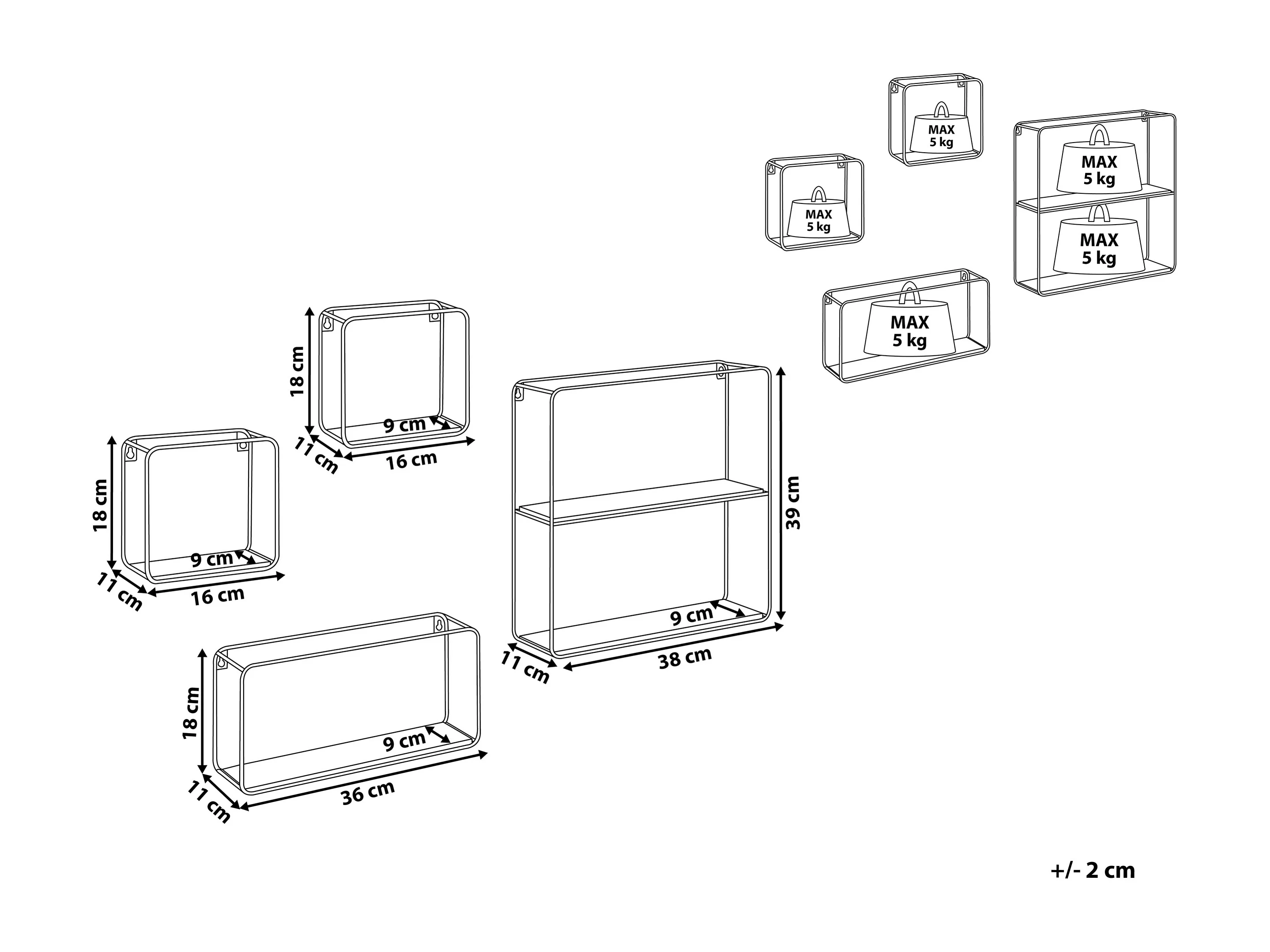 Set d'étagères murales BRITO Noir
