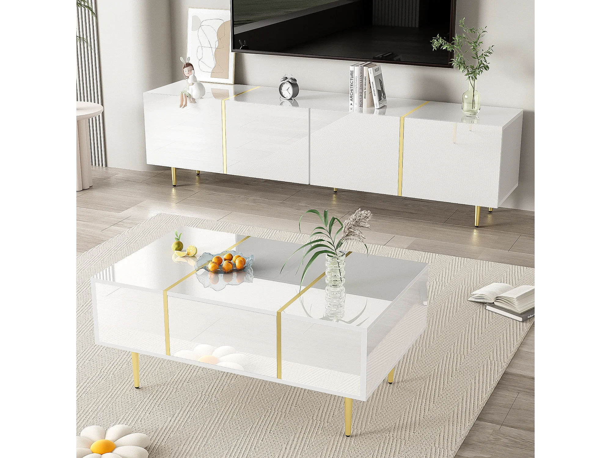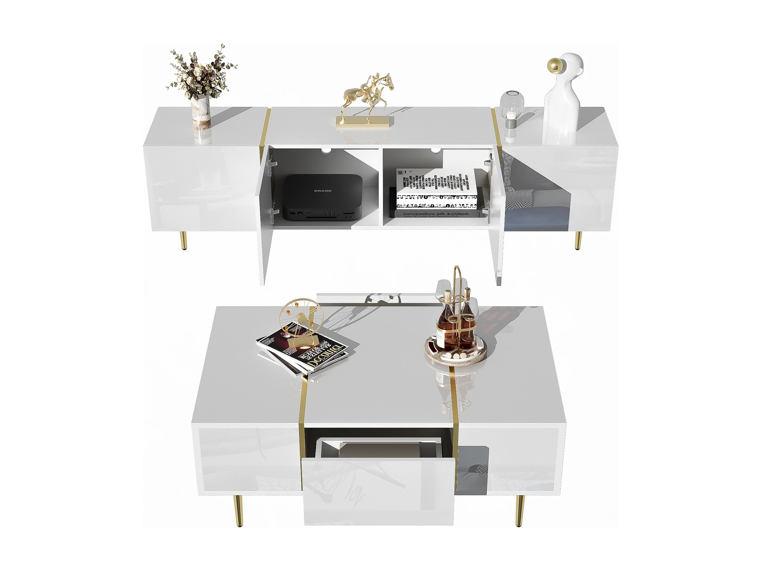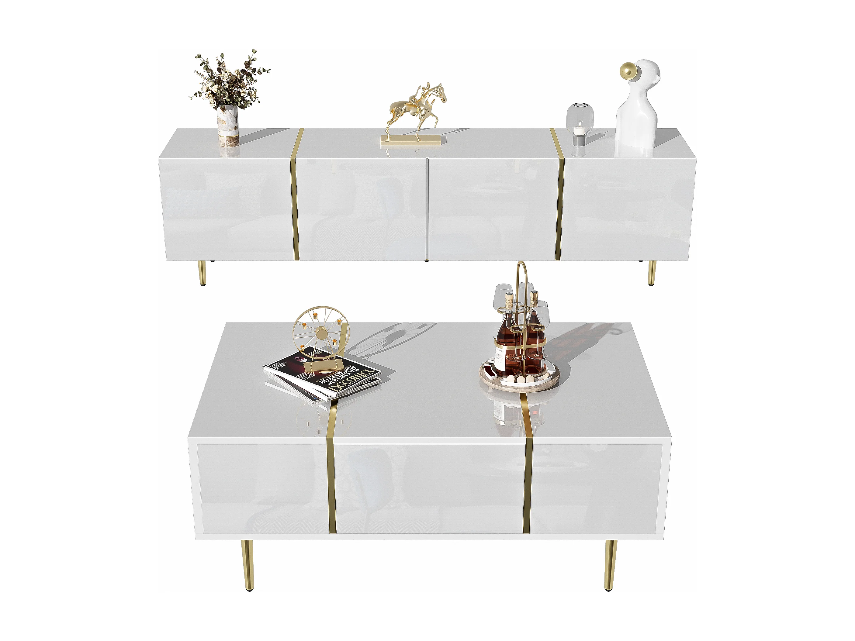 Set Meuble TV et Table Basse Haut Brillant Blanc, Design Élégant, MDF (170x35x46cm / 100x60x41.5cm)
