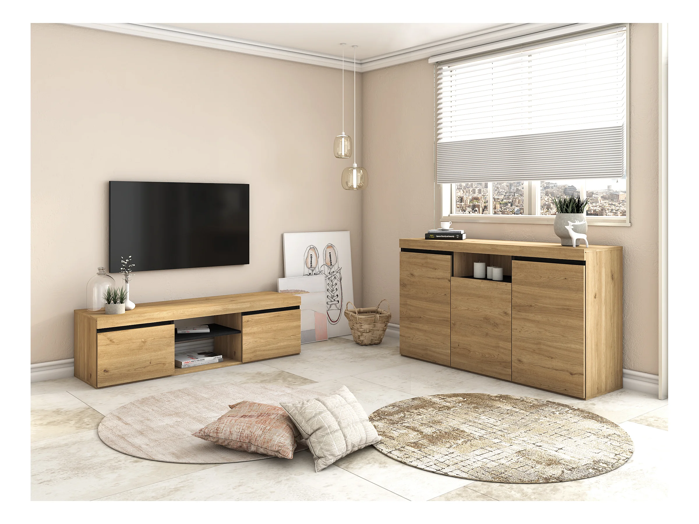 Set Naturale salle à manger, meuble auxilier, buffet-meuble TV 140cm chêne noir