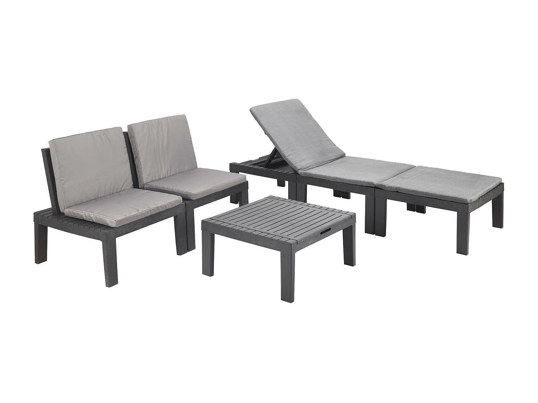 Set salon d’extérieur Dbaggi, Salon de jardin avec 2 sièges avec dossier et 1 module multifonctionnel, Coin salon avec coussins, 100% Made in Italy, Anthracite