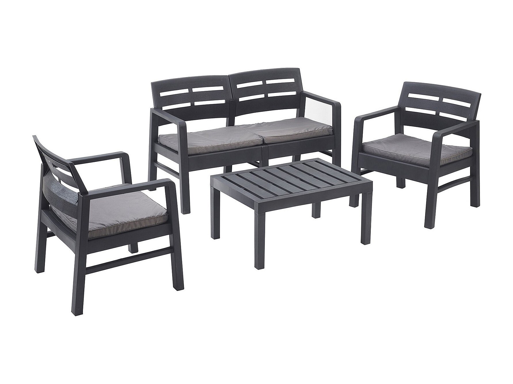 Outdoor-Lounge-Set Dgyas, Gartengarnitur mit 2 Sesseln, 1 Sofa und 1 Couchtisch, Innen- und Außensitzgruppe mit Kissen, 100 % Made in Italy, Anthrazit