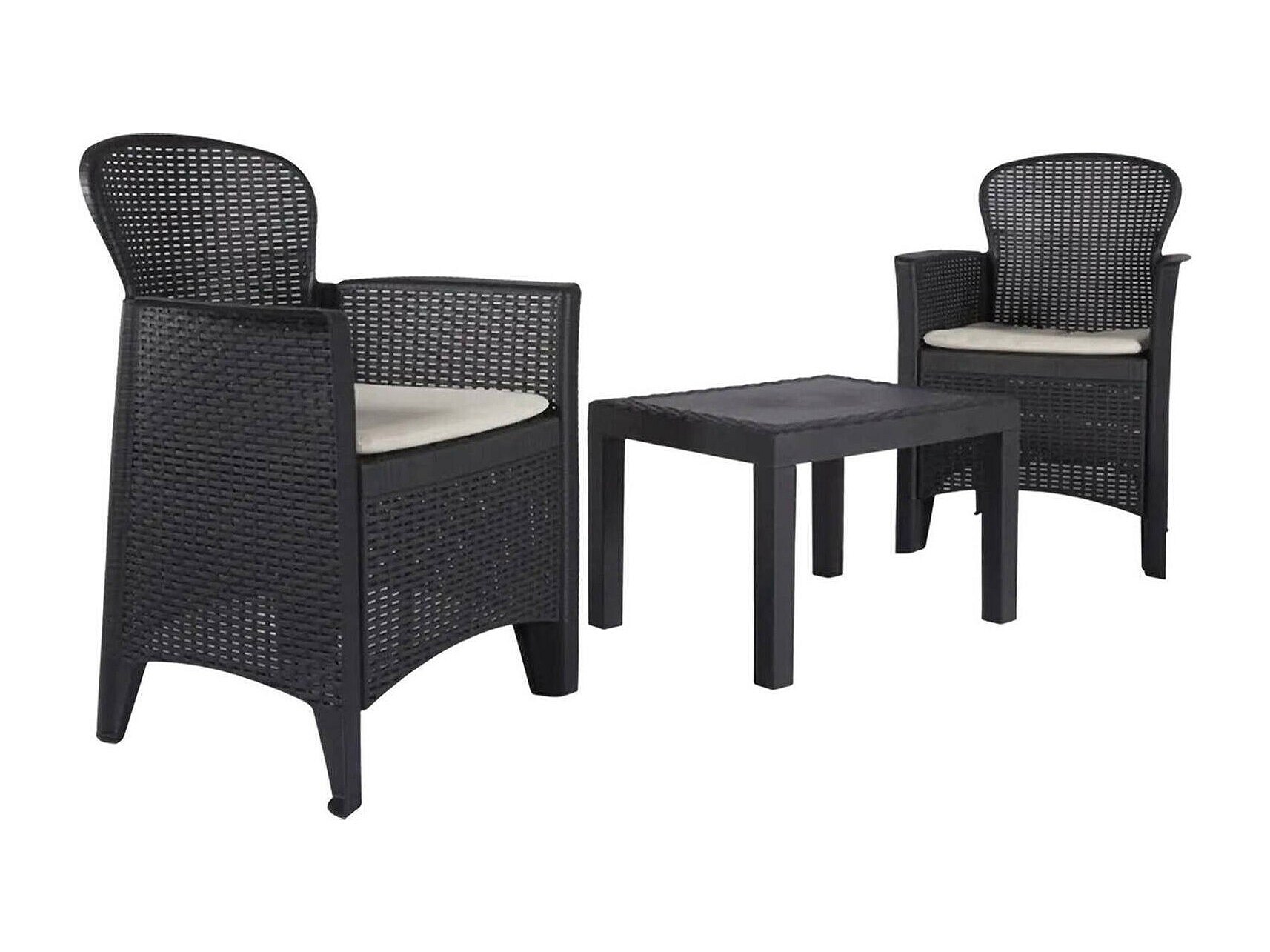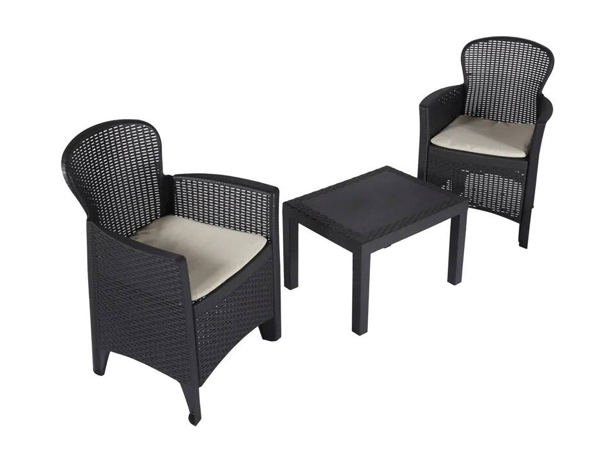 Set salon d’extérieur Dakain, Salon de jardin composé de 2 fauteuils et 1 table conteneur, Salon effet rotin, 100% Made in Italy, Anthracite