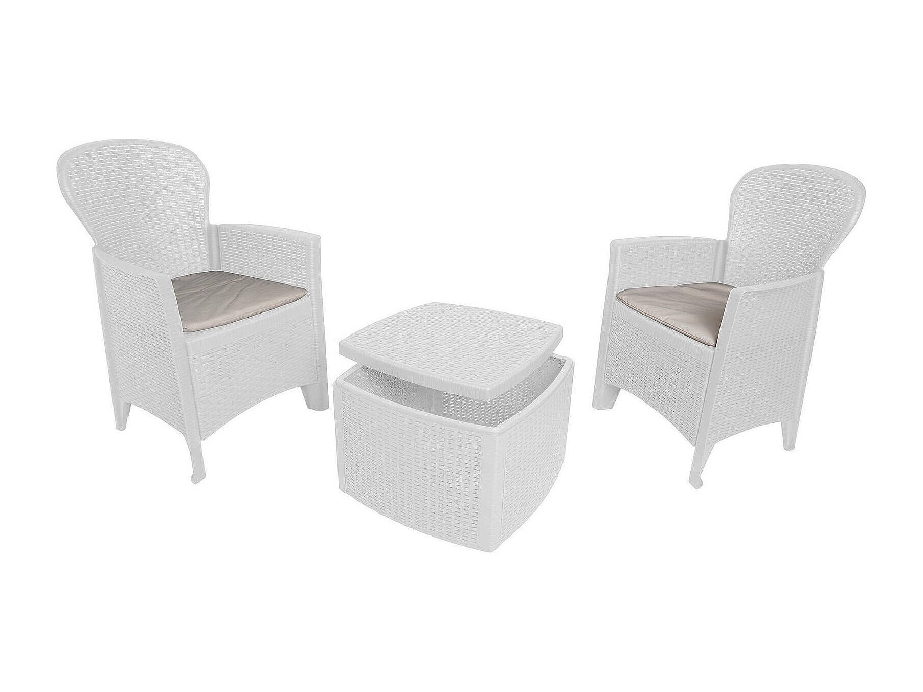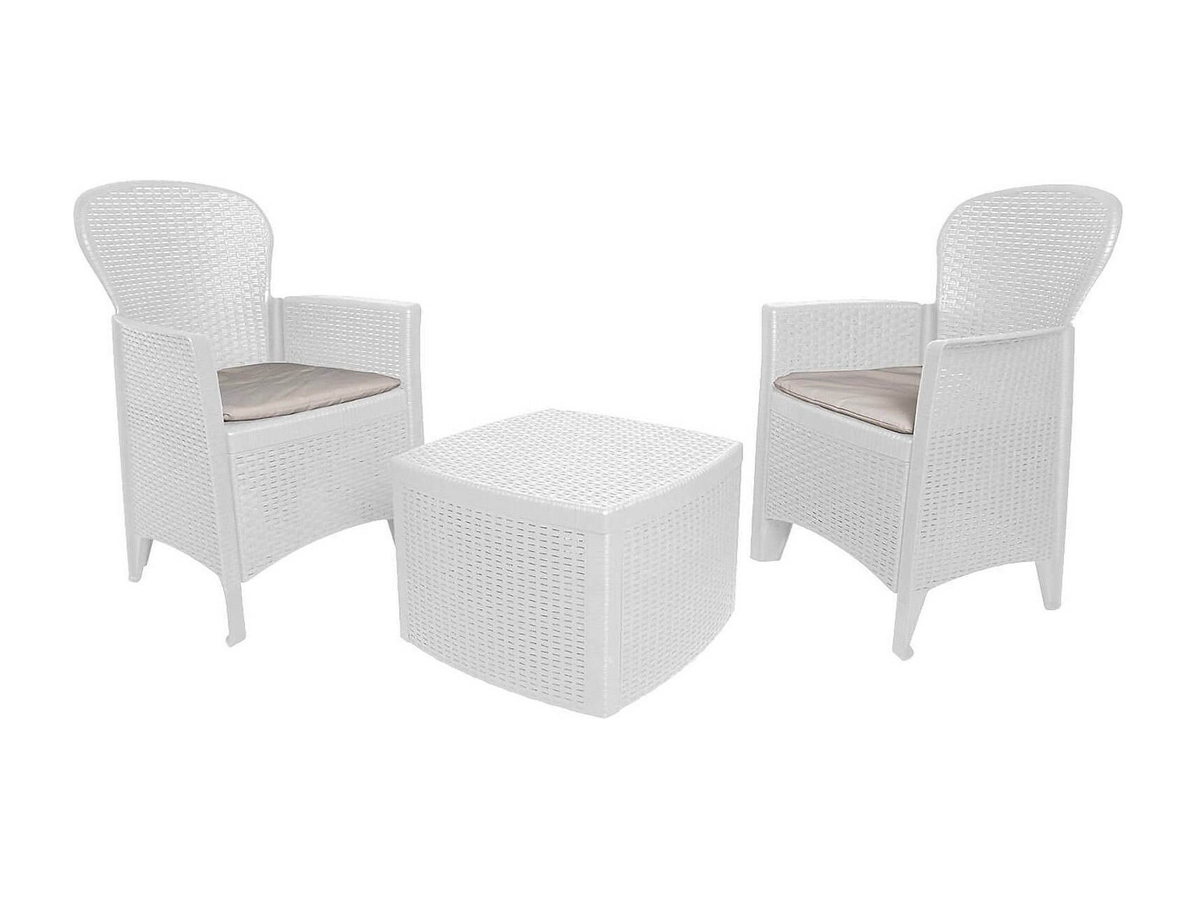 Set salon dÂ'extérieur Napoli, Salon de jardin composé de 2 fauteuils et 1 table conteneur, Salon effet rotin, 100% Made in Italy, Blanc