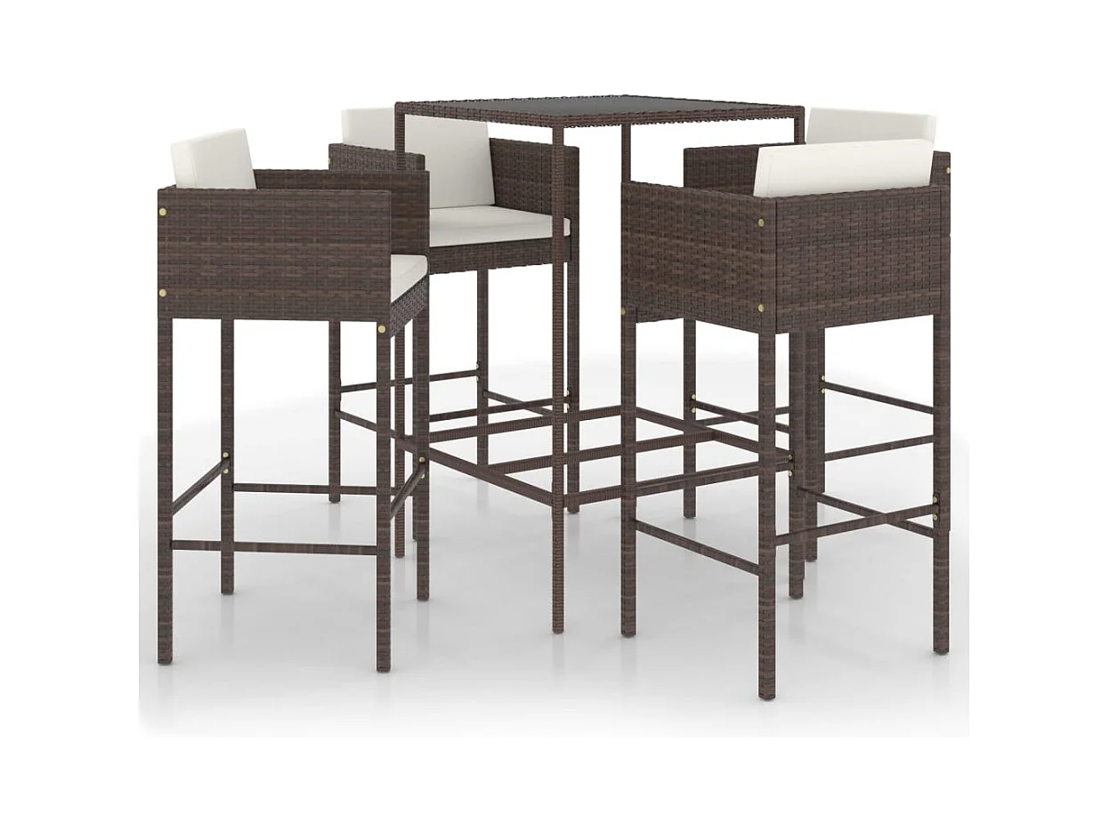 Tomaz Ensemble de bar de jardin avec coussins 5 pcs marron poly rotin