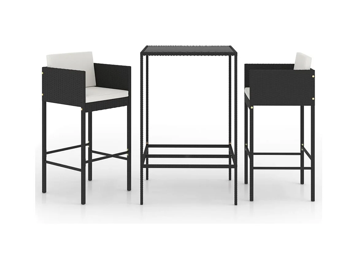 Settimio Ensemble de bar de jardin 3 pcs et coussins Résine tressée Noir