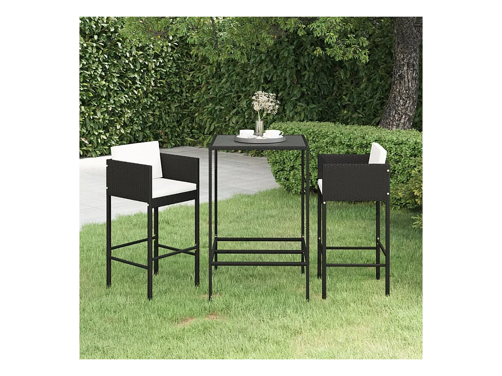 Mary Ensemble de bar de jardin 3 pcs et coussins Résine tressée Noir