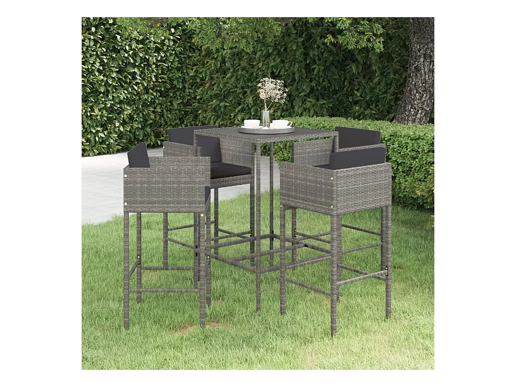 Mary Ensemble de bar de jardin 5 pcs et coussins Résine tressée Gris