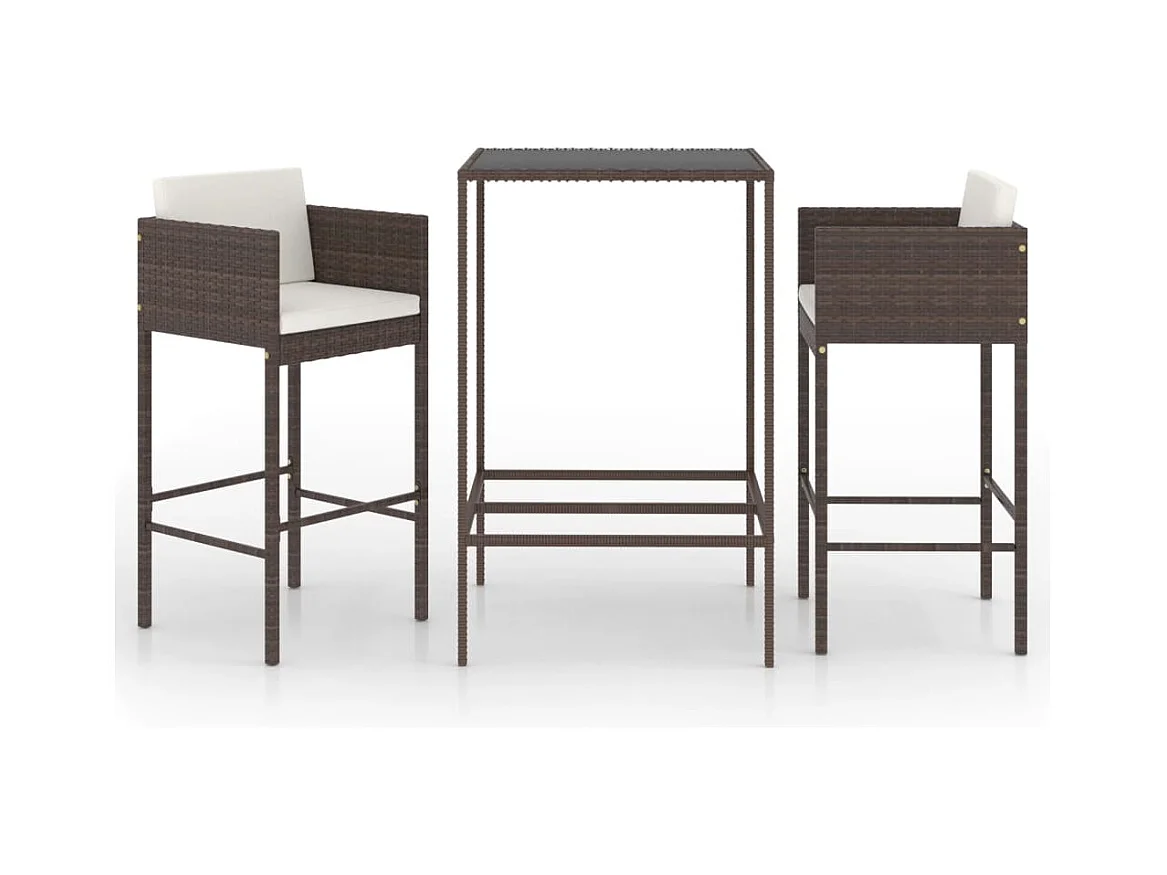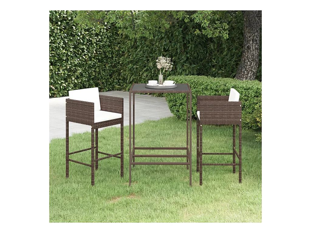 Mary Ensemble de bar de jardin 3 pcs coussins Résine tressée Marron