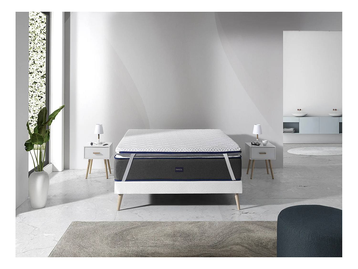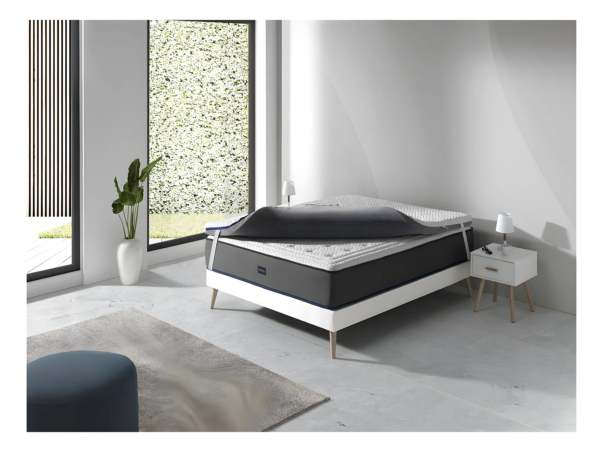 SHAULA Sur Matelas Mousse a memoire de forme 150X200 JENO, Epaisseur 8 CM, Dehoussable, adaptable.