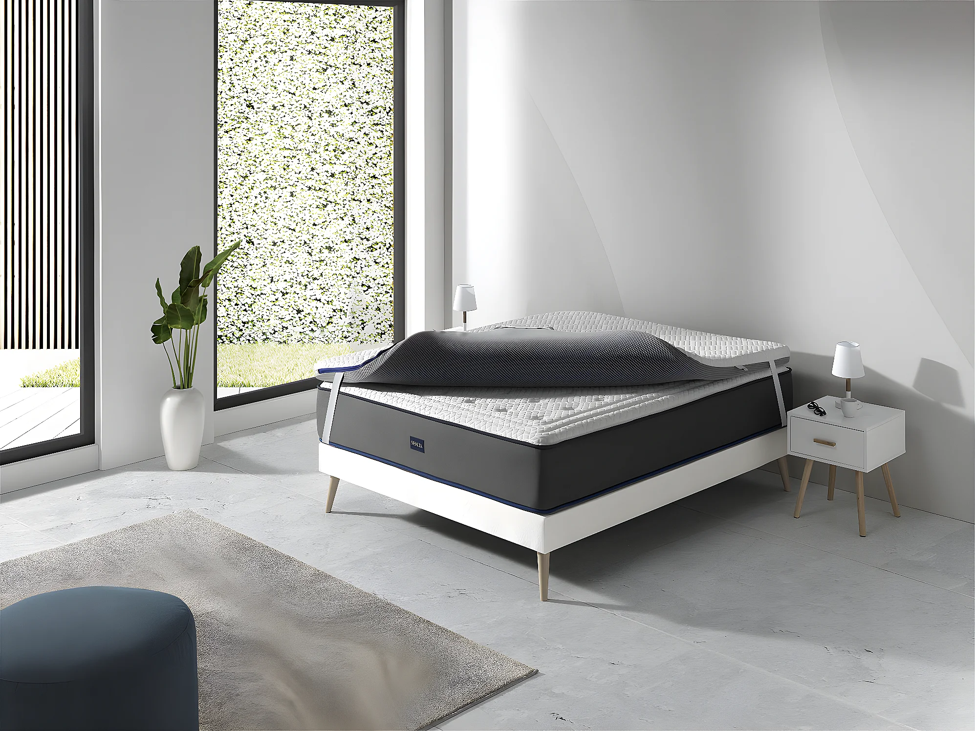 SHAULA Sur Matelas Mousse a memoire de forme 160X190 JENO, Epaisseur 8 CM, Dehoussable, adaptable.