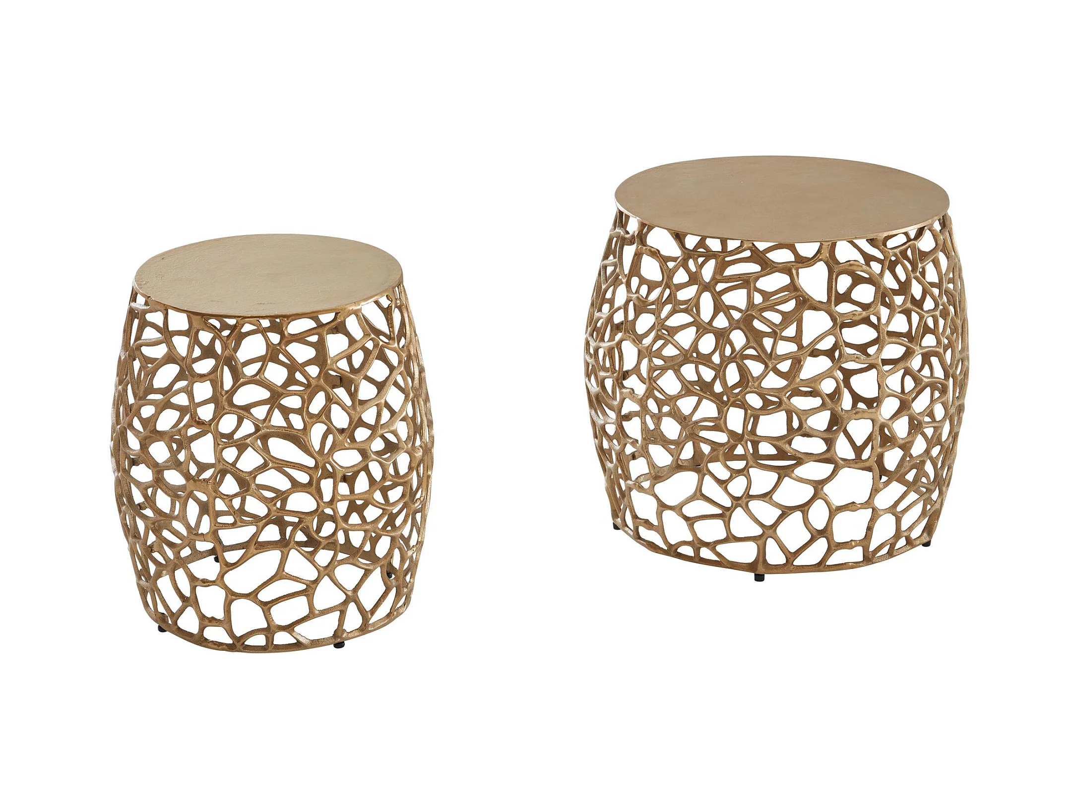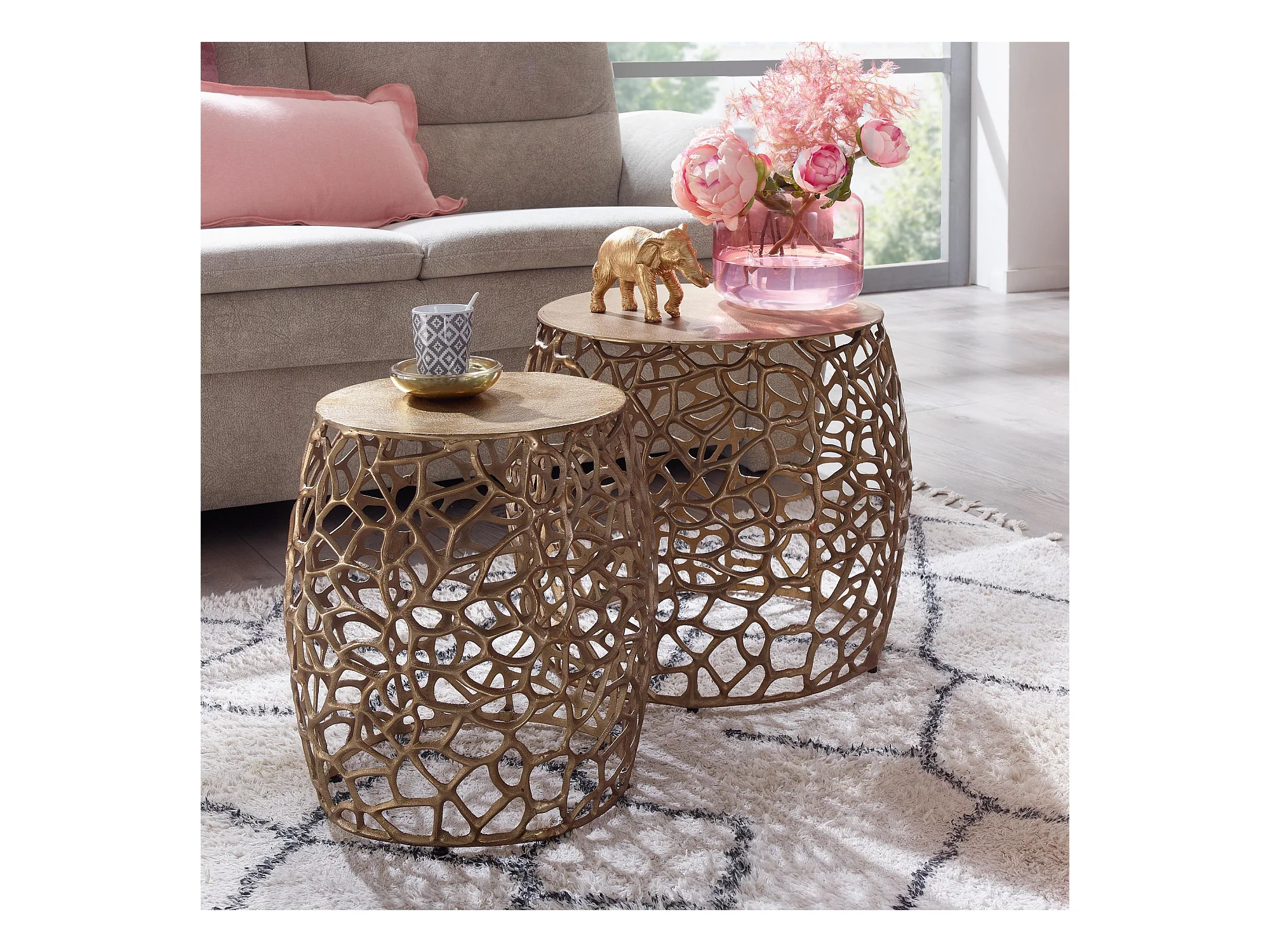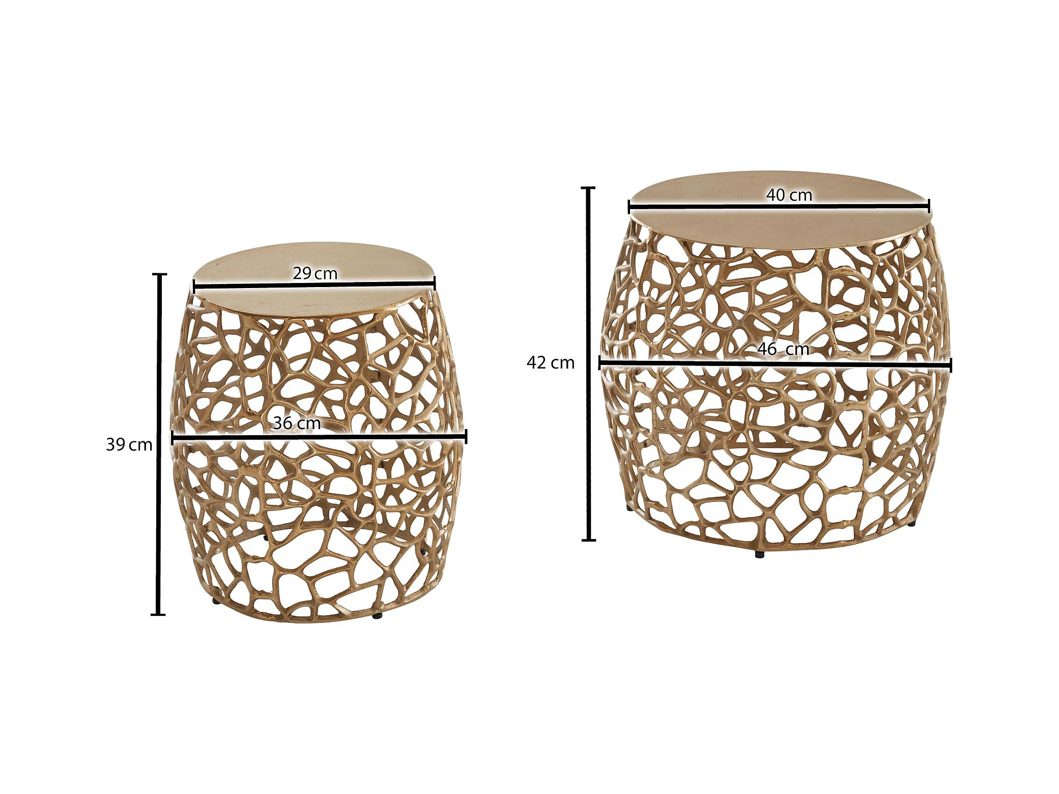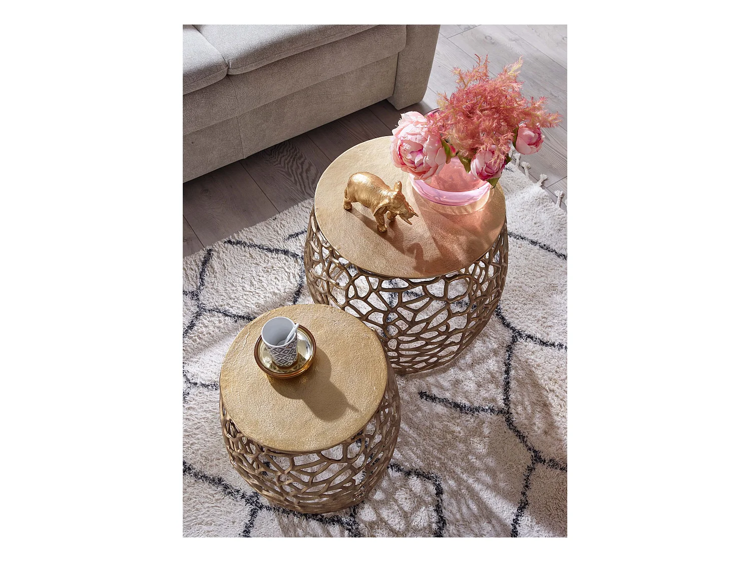 PETRO bijzettafel 42 x 42 x 42 cm ronde oosterse aluminium gouden tafel | Moderne metalen archieftafel | Antischisch Schmal | Kleine Abstelltische drilboor