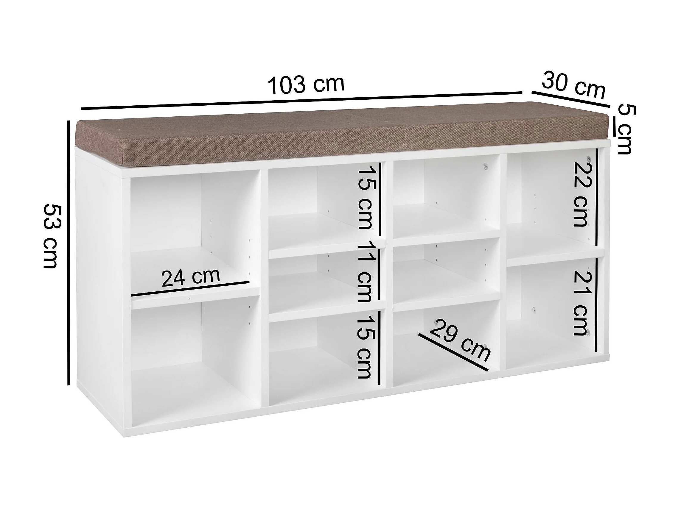 Parya Home banc à chaussures, avec siège et coussin d'assise, banc de rangement, 3 compartiments brun rustique
