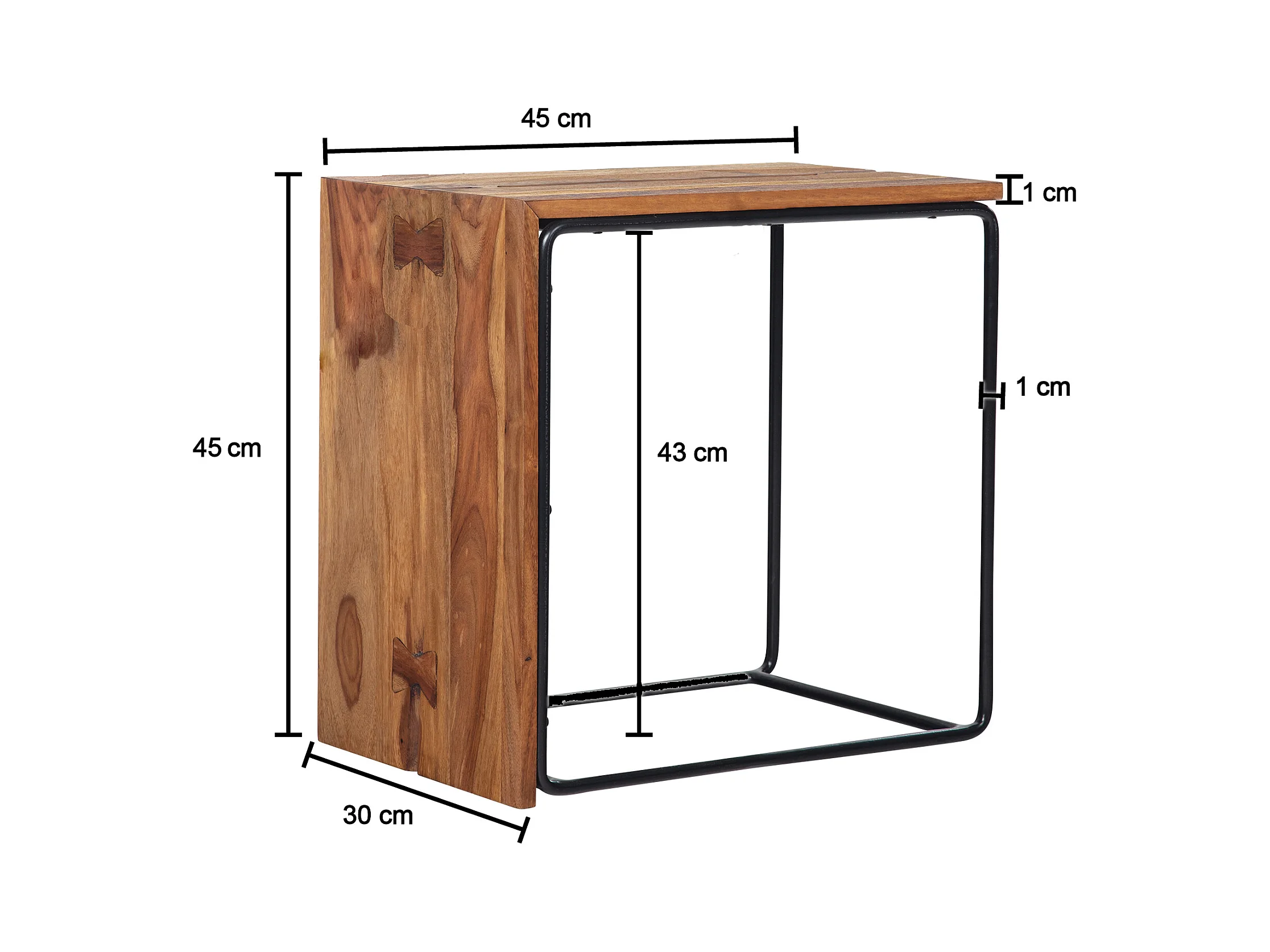 massief houten staande plank MUMBAI Sheesham 43,5 cm kubus plank design plank houten plank natuurproduct bijzettafel in landelijke stijl