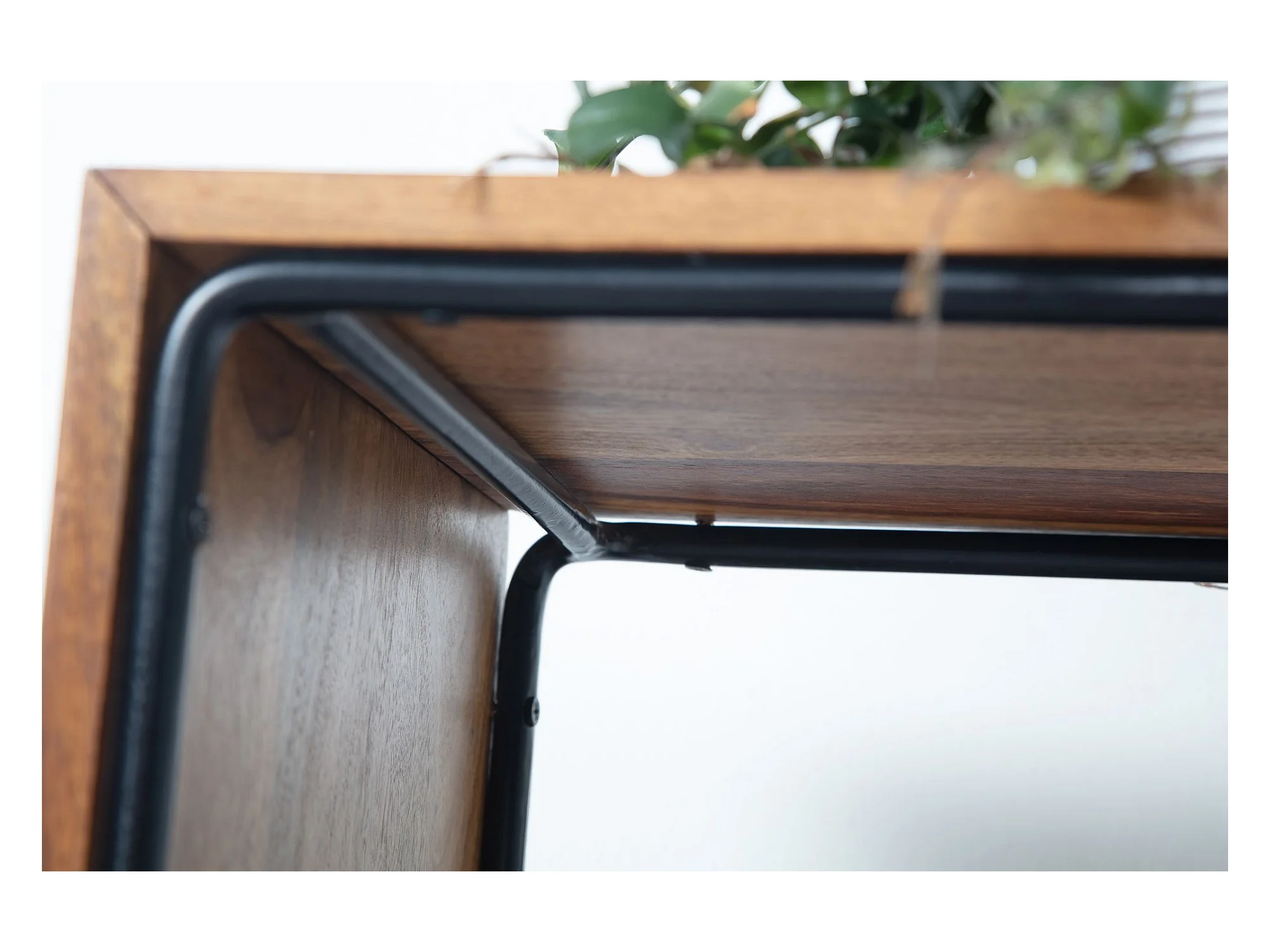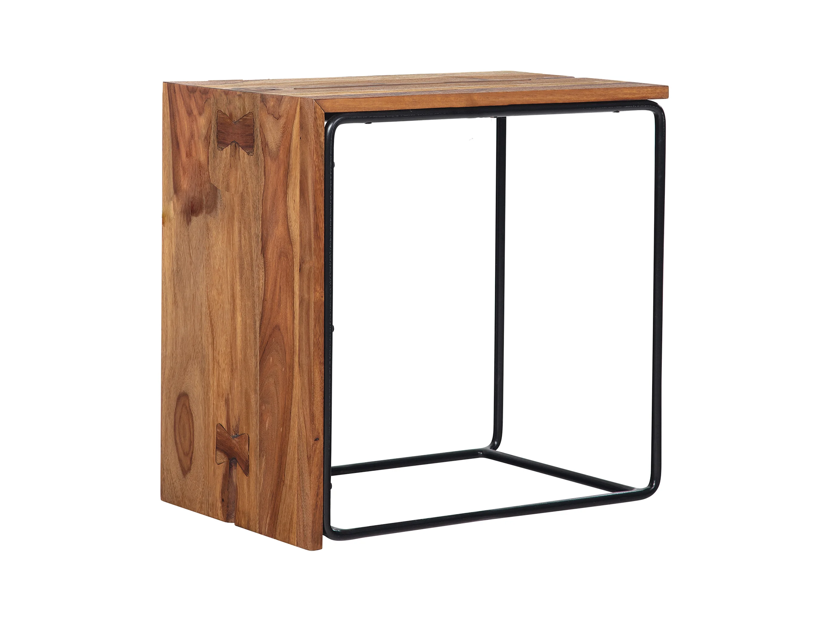 Design bijzettafel WL5.661 Sheesham metalen bijzettafelset, 2 klein | Salontafel Set 2 Houten Tafels | Metalen frame van massief houten salontafel | Salontafel