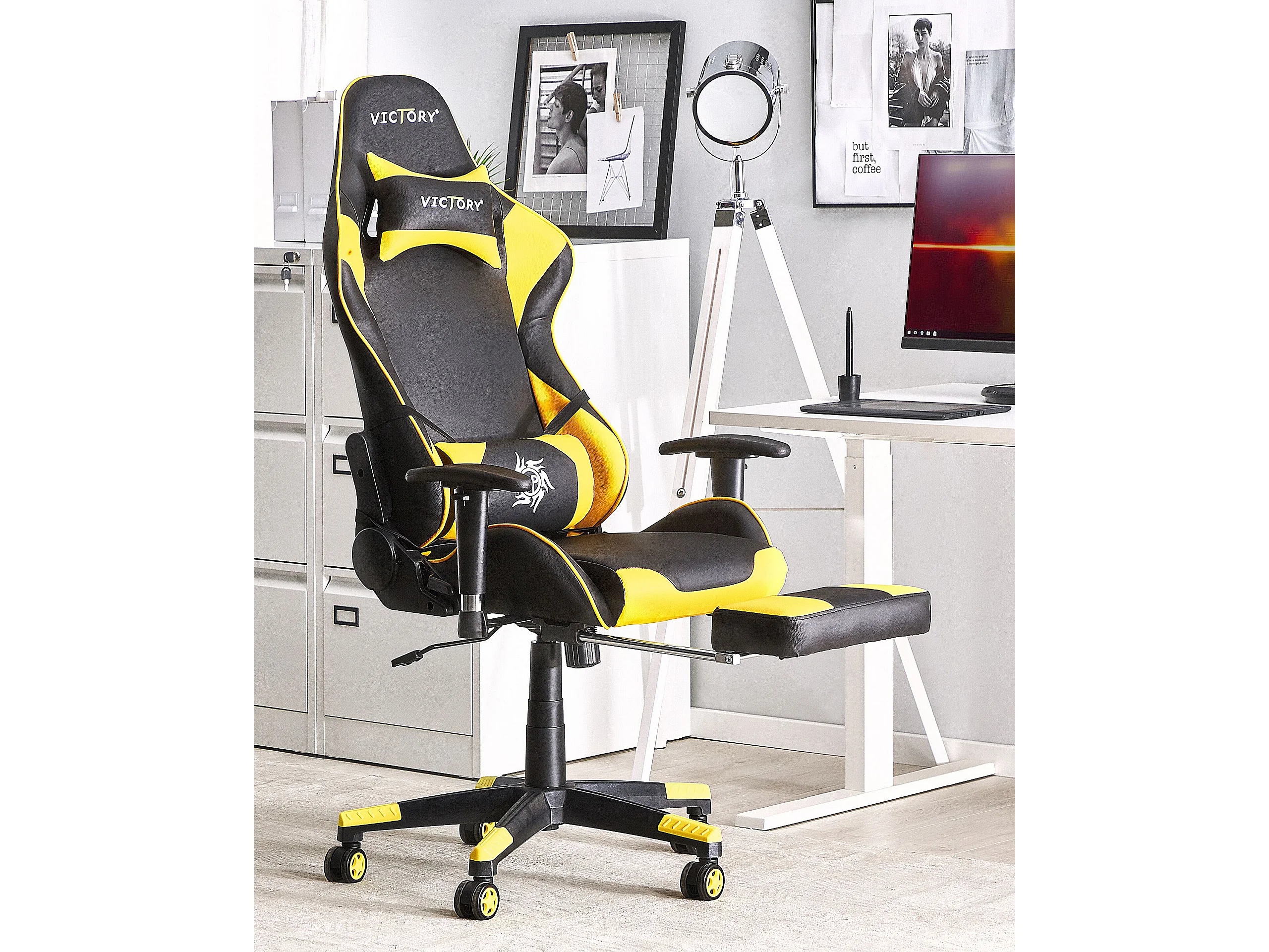 Chaise de jeu avec repose-pied Noir et doré Similicuir