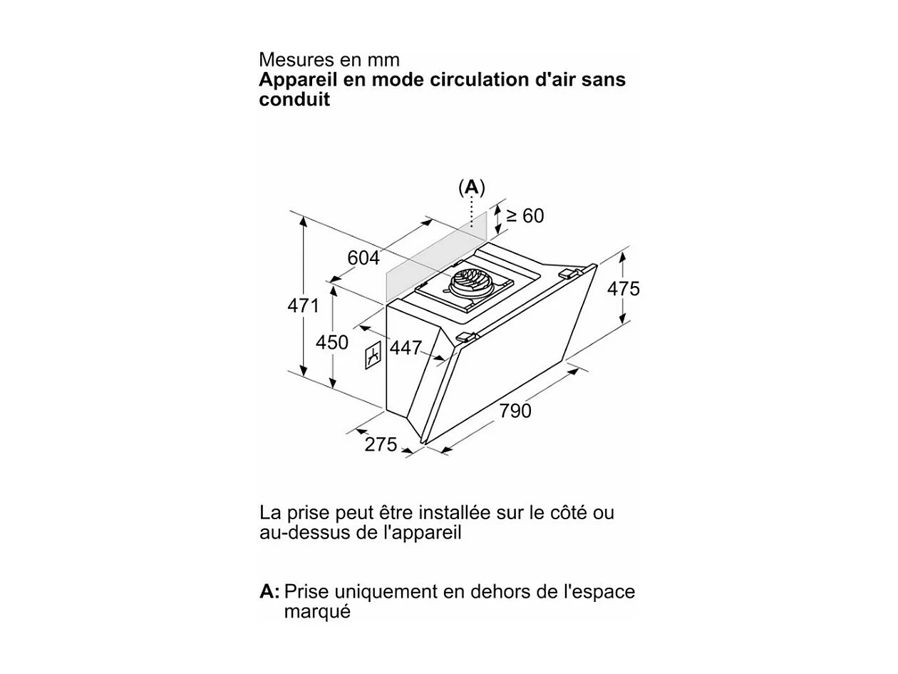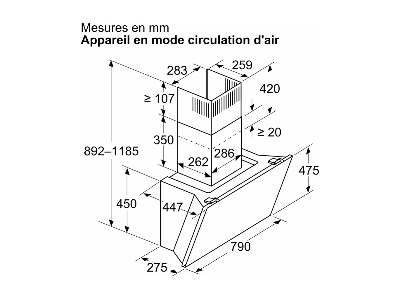 Siemens Hotte décorative inclinée 80cm 432m3/h noir - LC81KAN60