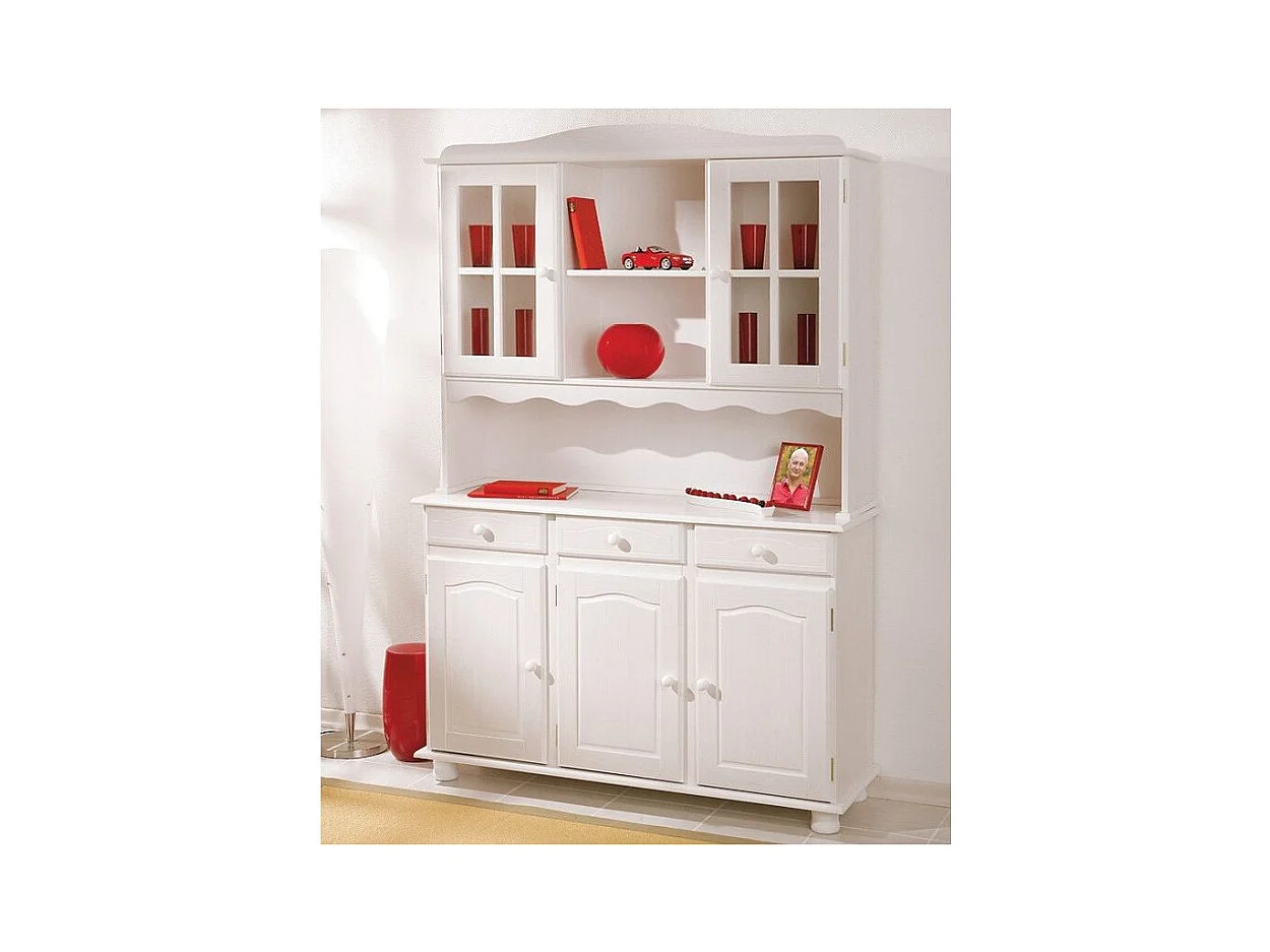 Vaisselier 3 Portes en Bois Massif "Alienor" 198cm Blanc