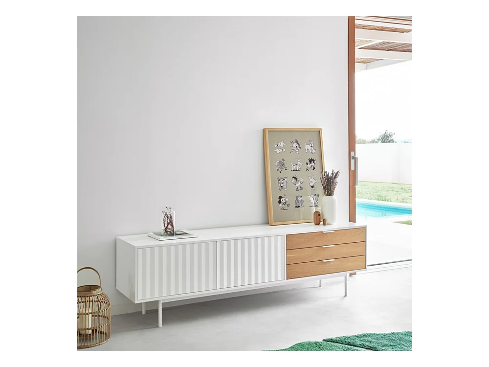 Sierra - Meuble TV 2 portes, 3 tiroirs en bois L180cm - Blanc