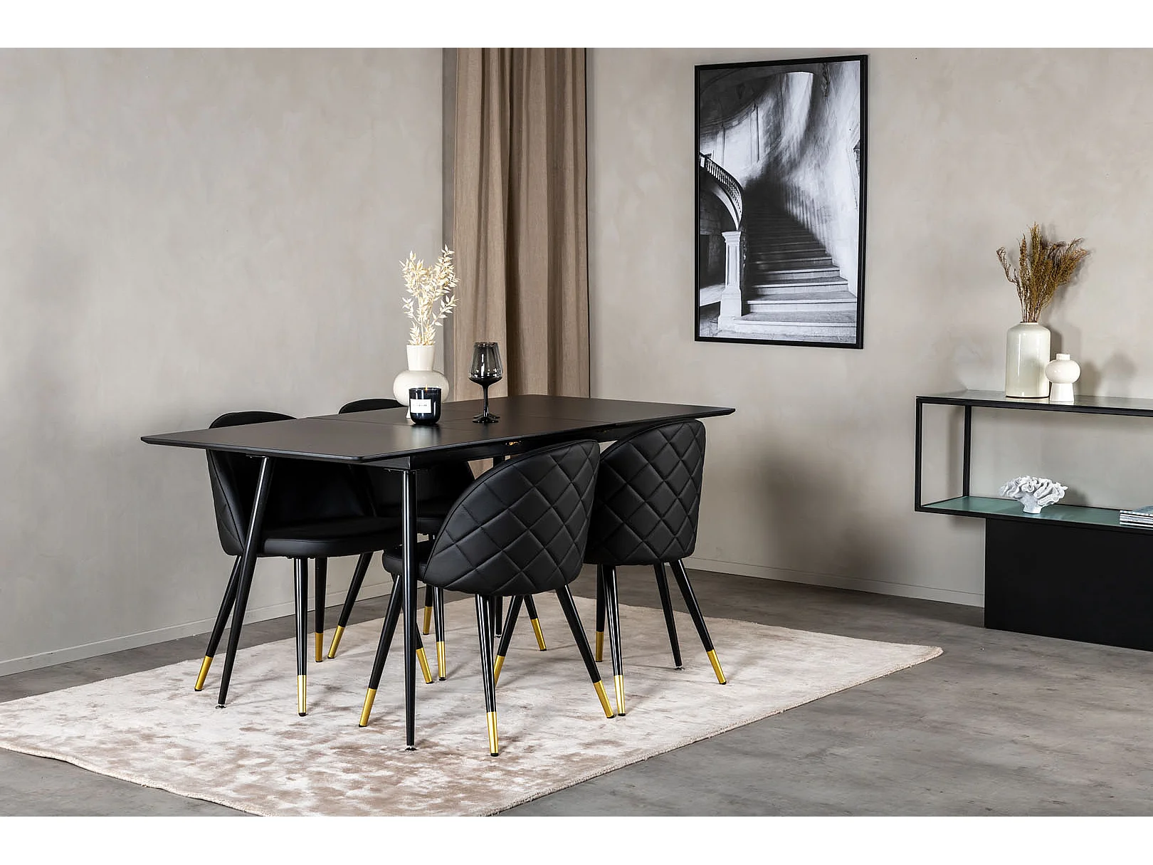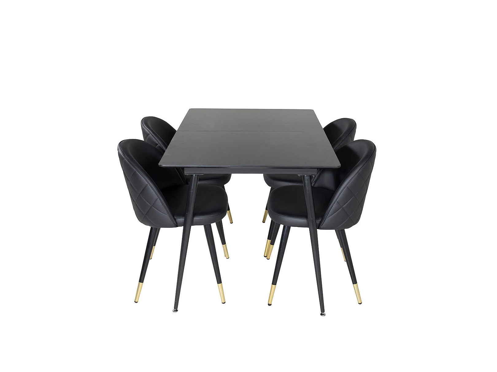 SilarBLExt ensemble table, table extensible longueur cm120 / 160 noir et 4 Velvet chaises Similicuir PU noir.