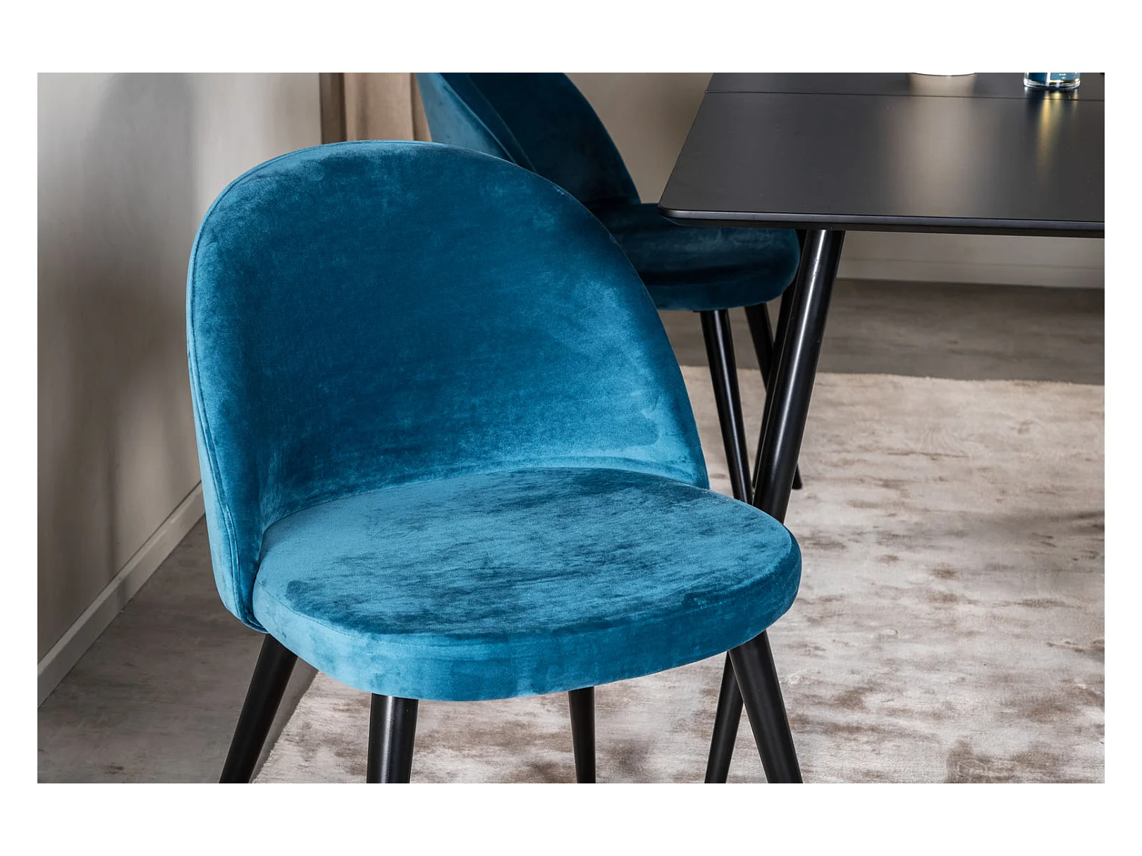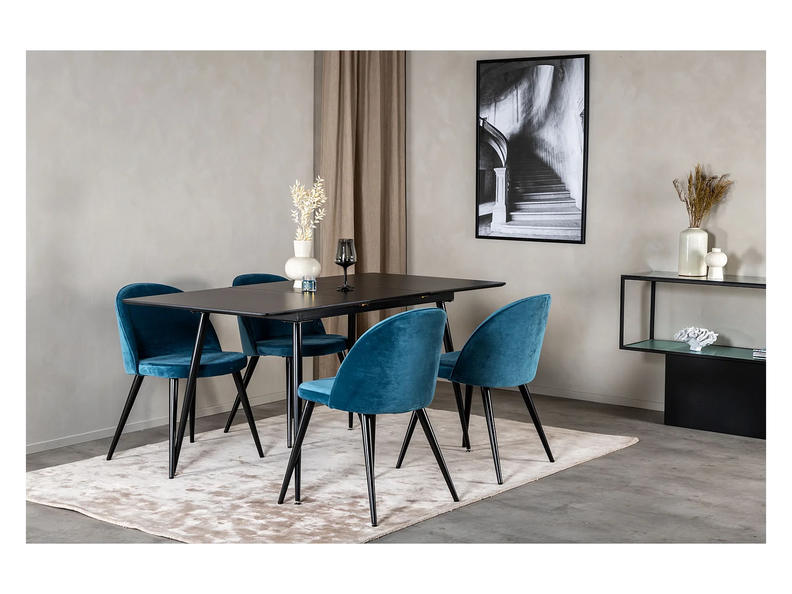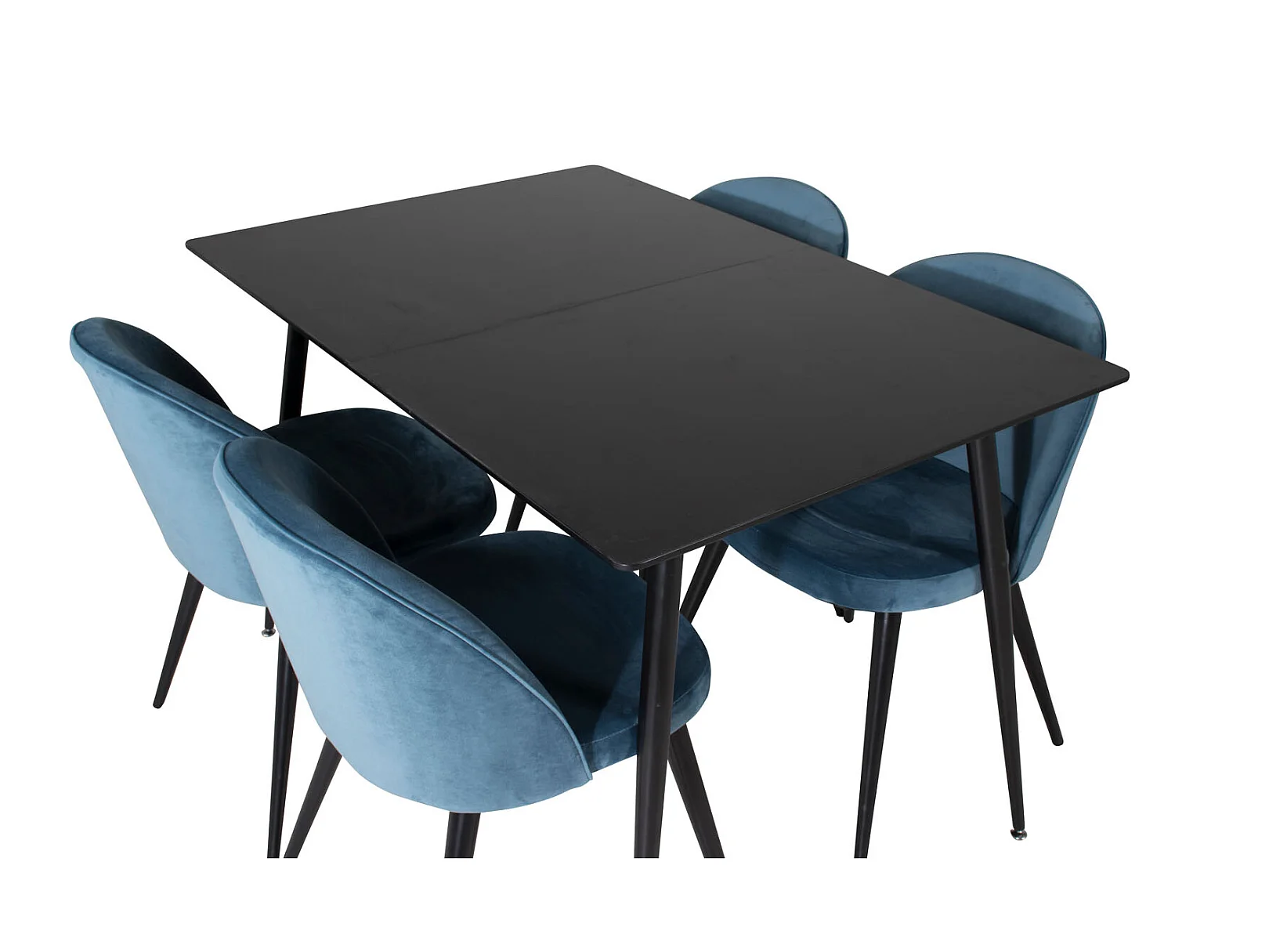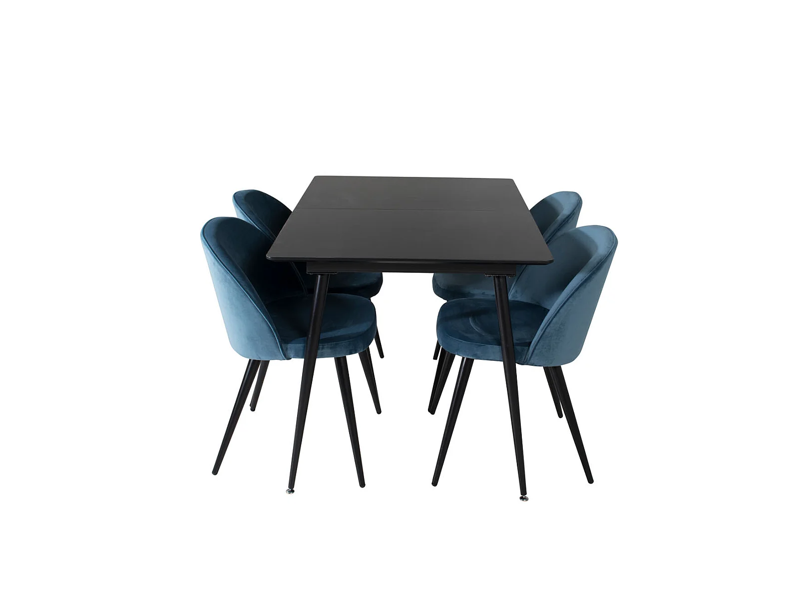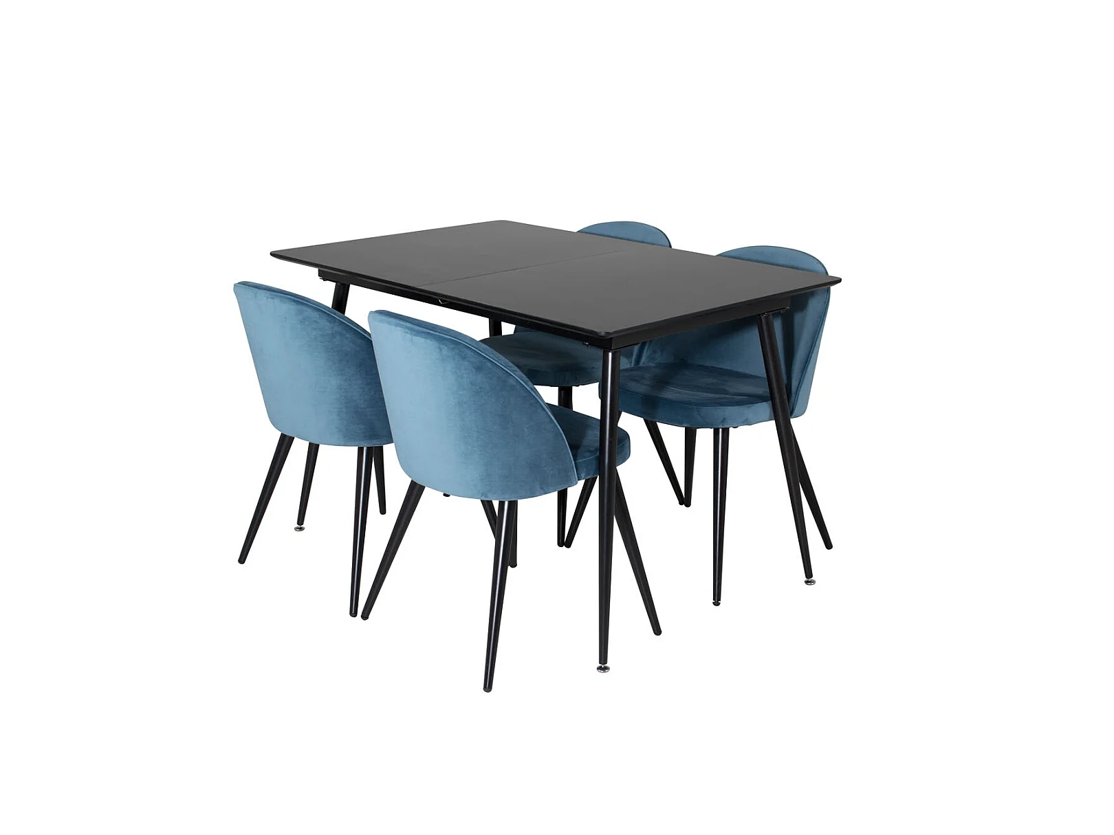 SilarBLExt ensemble table, table extensible longueur cm120 / 160 noir et 4 Velvet chaises Velours bleu, noir.