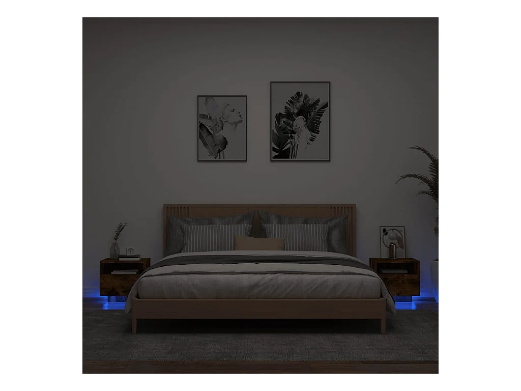 Simo Armoires de chevet avec lumières LED 2 pcs chêne fumé