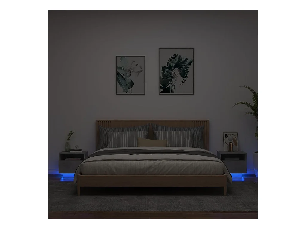 Simo Armoires de chevet avec lumières LED 2 pcs gris béton