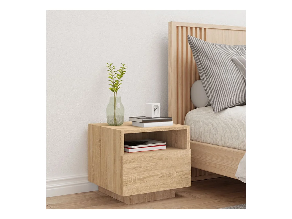 Josane Armoire de chevet avec lumières LED chêne sonoma 40x39x48,5 cm