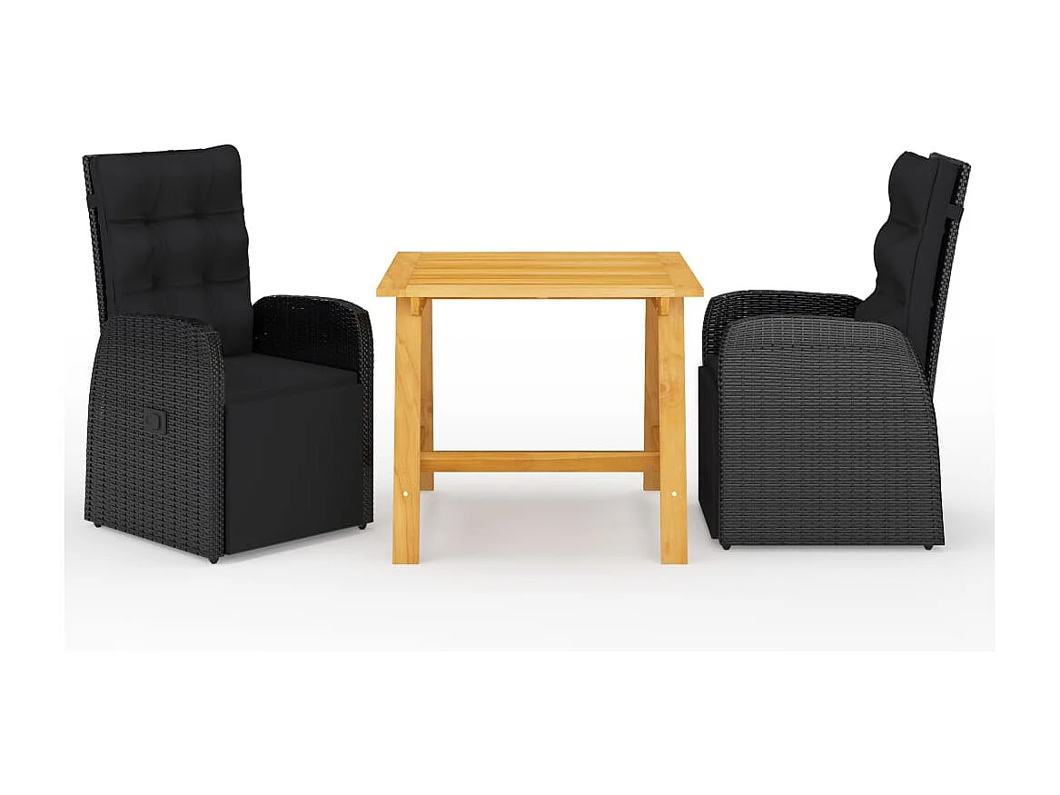 Roanne Ensemble à manger de jardin 3 pcs Noir