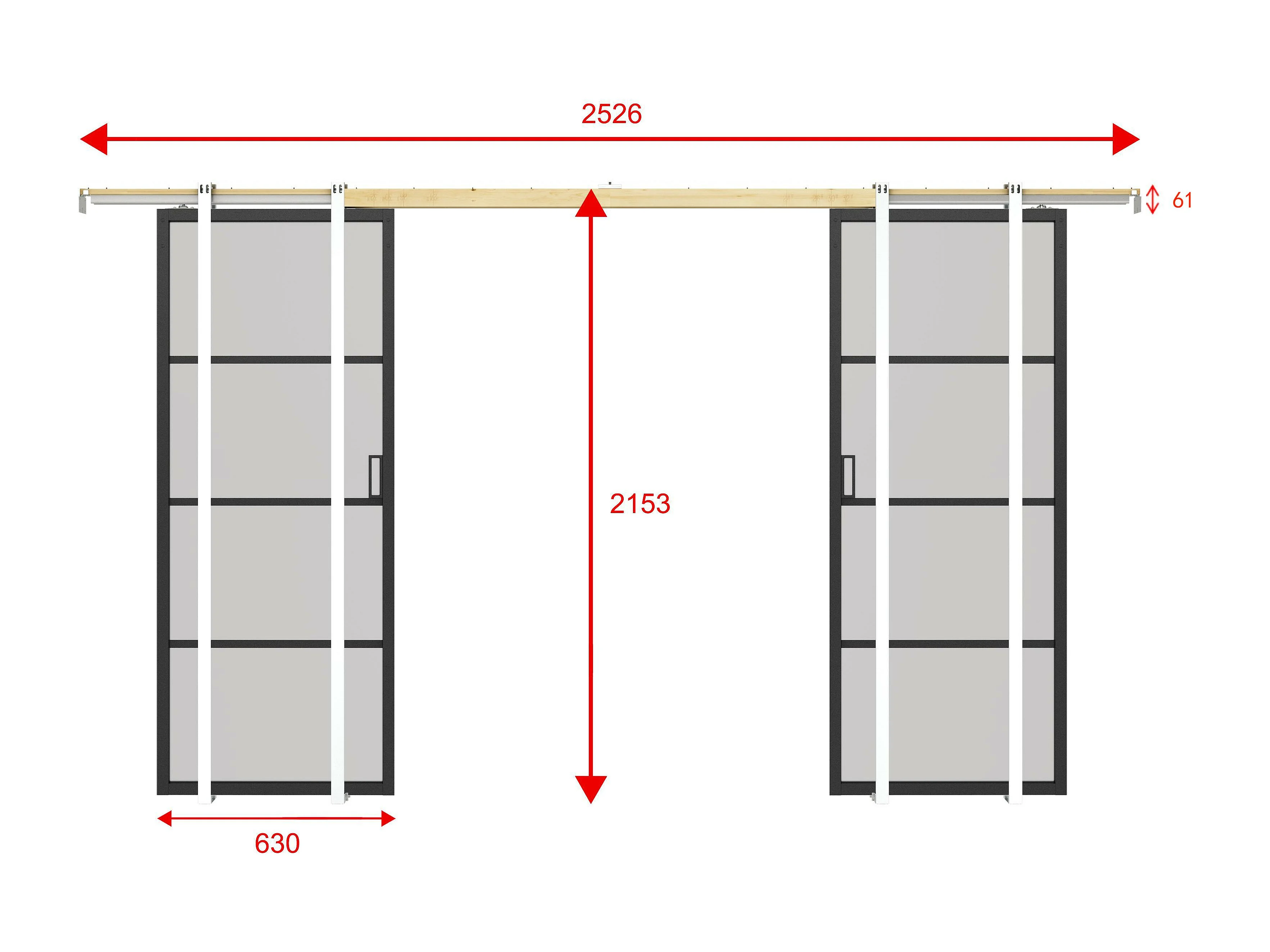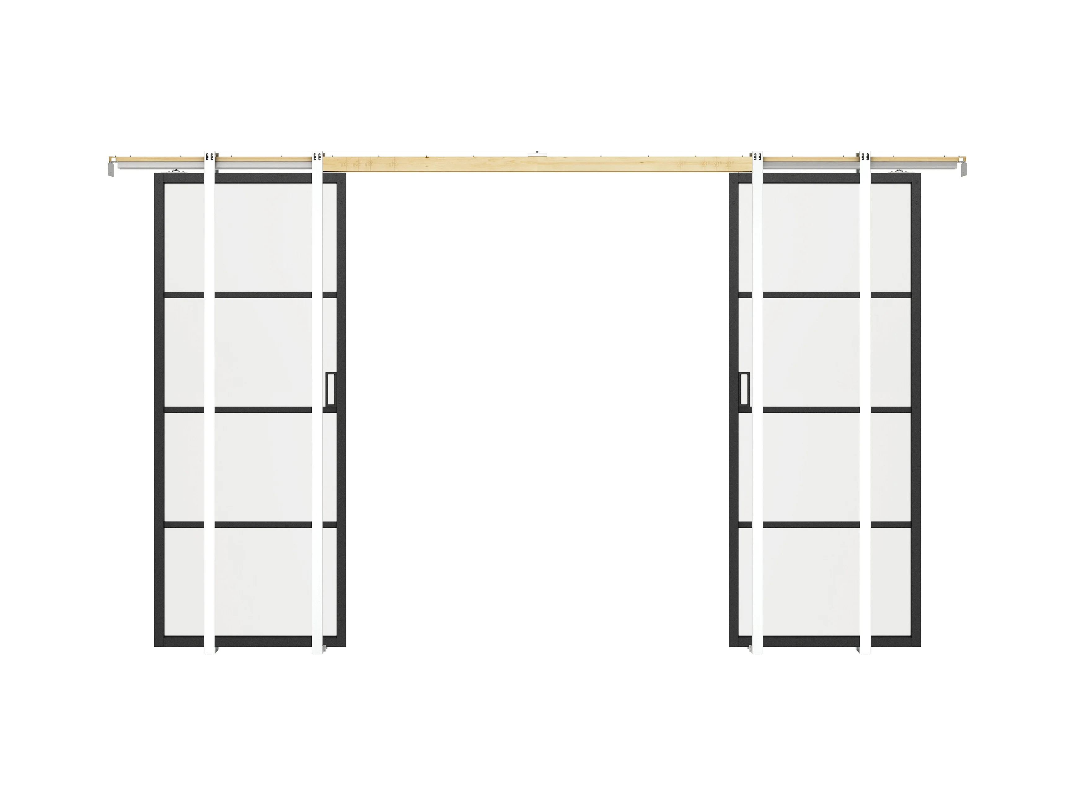 Porte coulissante double avec système à galandage - aluminium et verre trempé dépoli - 2 x H205 x L63 cm - SINCA II