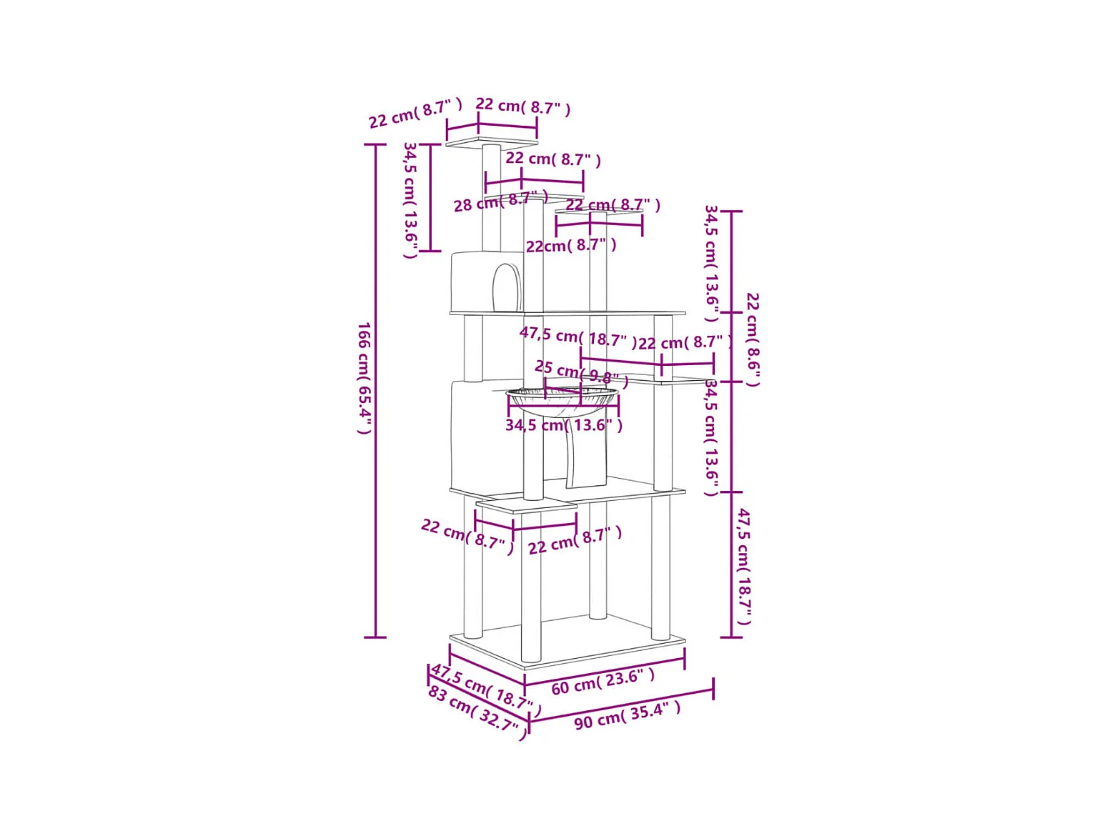 Sindar Arbre à chat avec griffoirs en sisal Gris foncé 166 cm