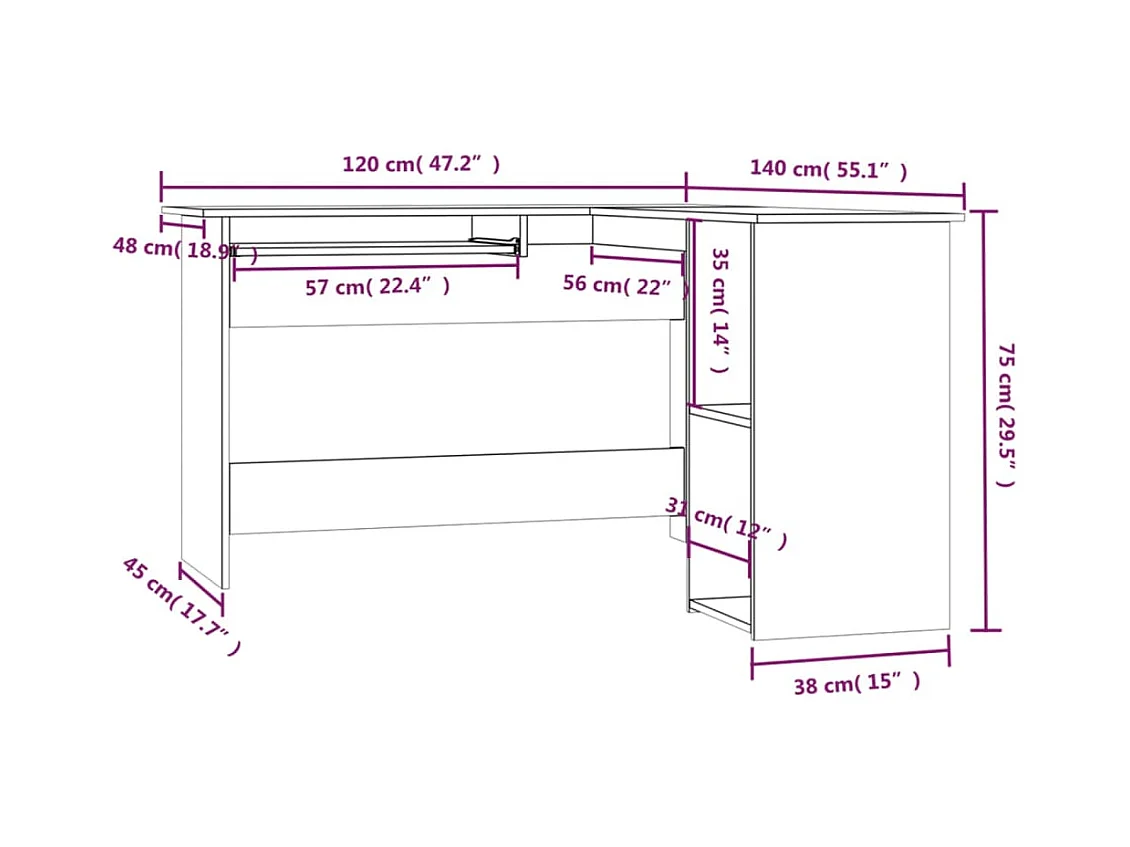 Skive Bureau d'angle chêne fumé 120x140x75 cm bois d'ingénierie