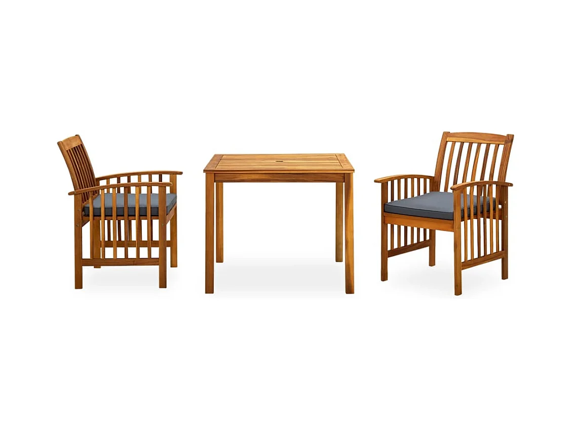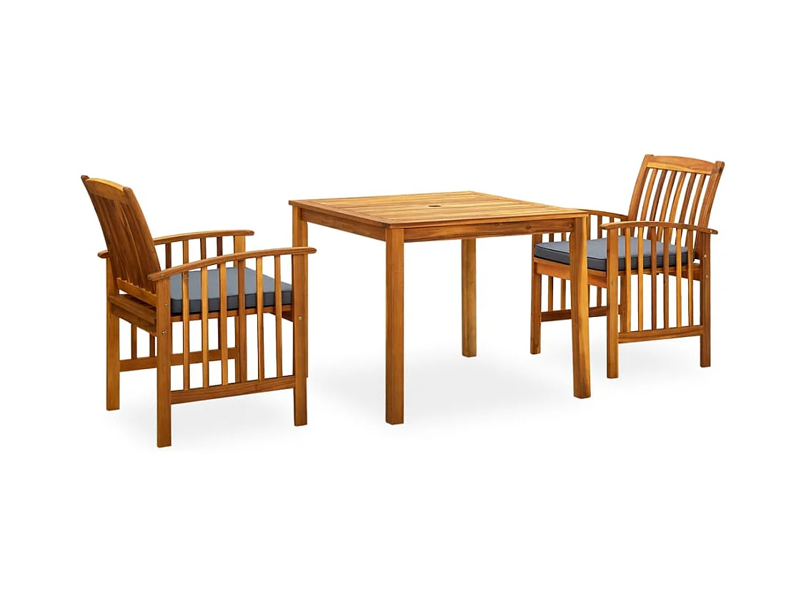 Skovil Ensemble à manger de jardin 3 pcs et coussins Acacia solide