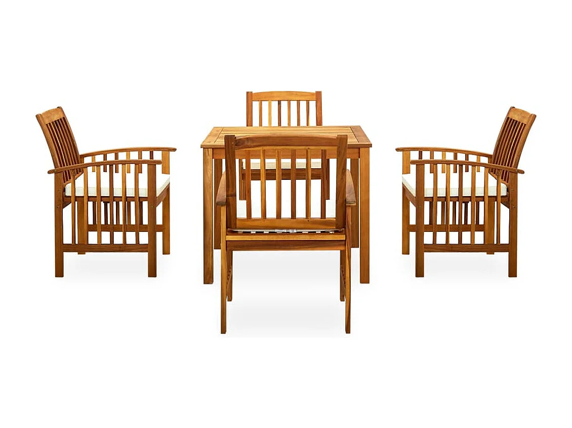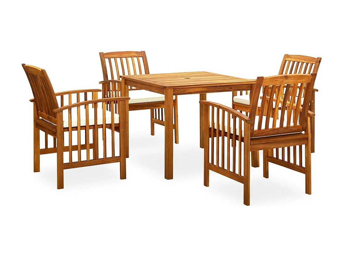 Skovil Ensemble à manger de jardin 5 pcs avec coussins Acacia solide