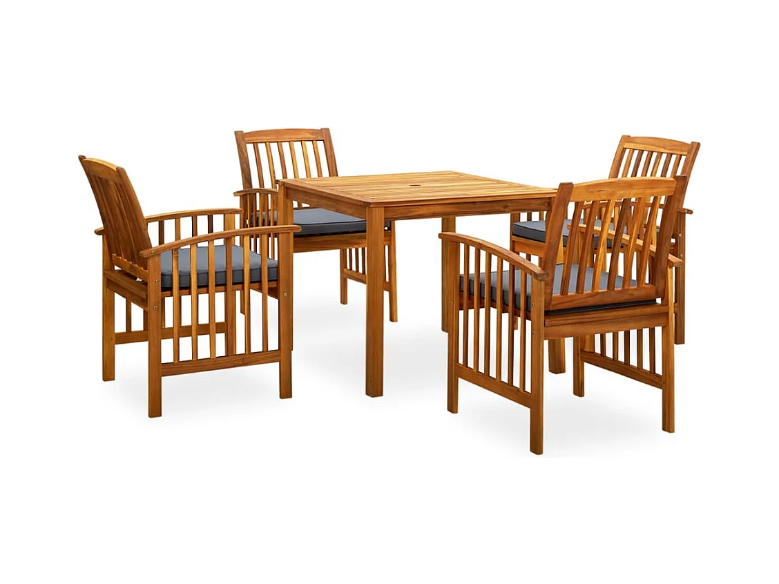 Skovil Ensemble à manger de jardin 5 pcs avec coussins Acacia solide