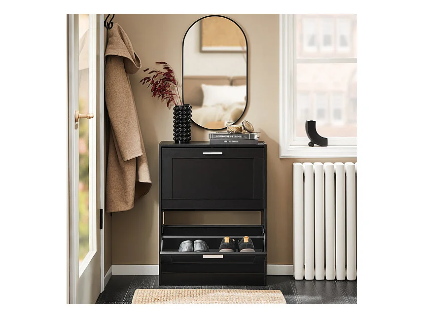 SoBuy Meuble à Chaussures avec 2 Abattants pour Entrée - L60xP25xH80 cm, Noir FSR137-SCH