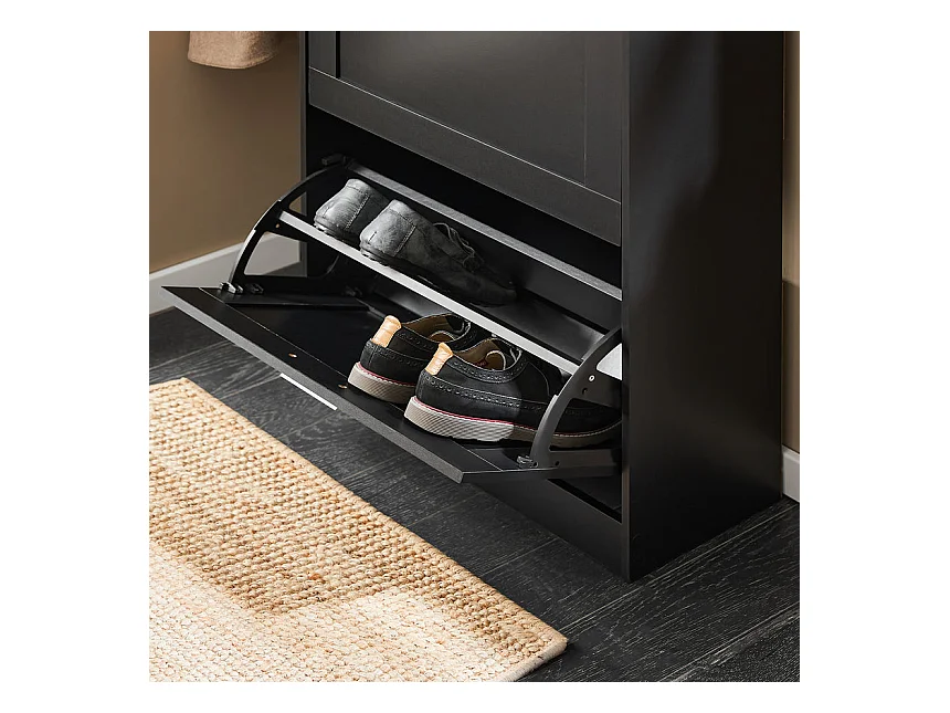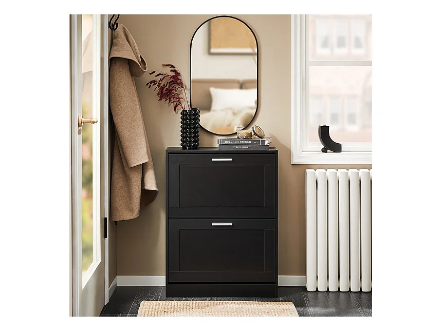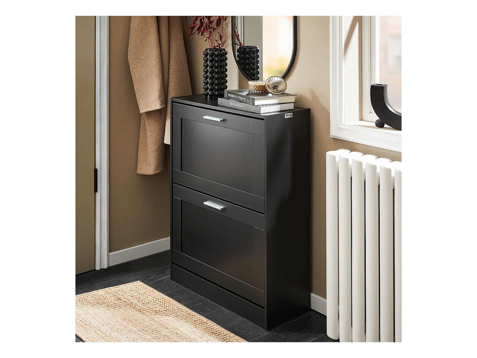 Meuble De Rangement À Chaussures Armoire À Chaussures 2 Abattants Noir, Fsr87-sch