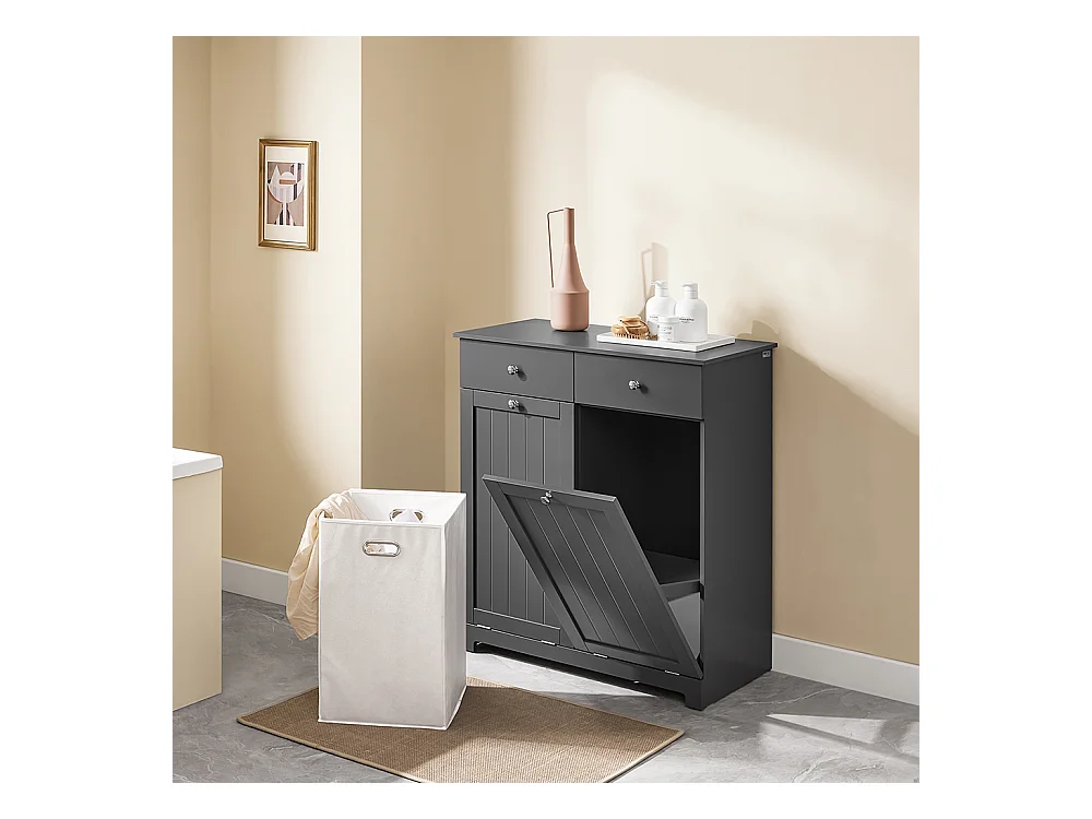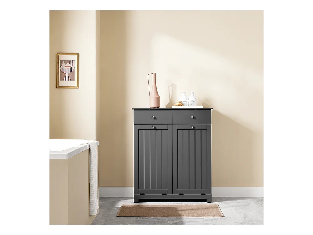 Panier à linge 100L avec 2 compartiments, bambou, gris (52x32x63 cm)