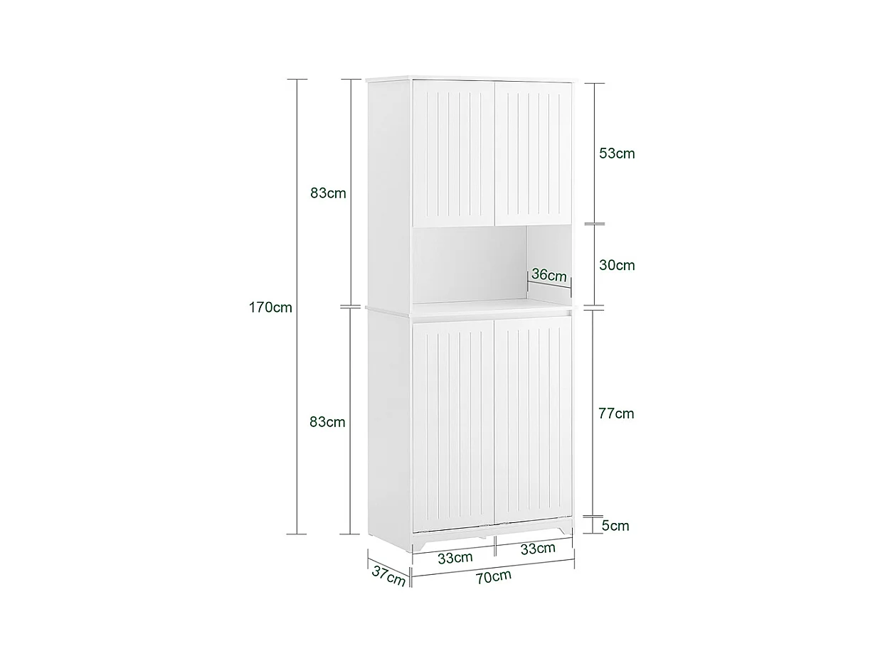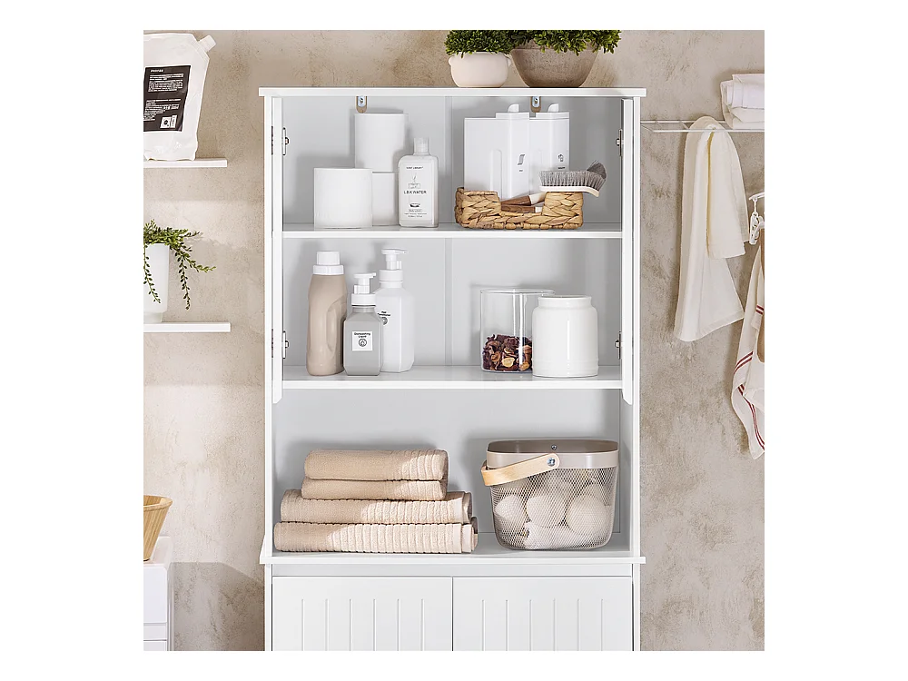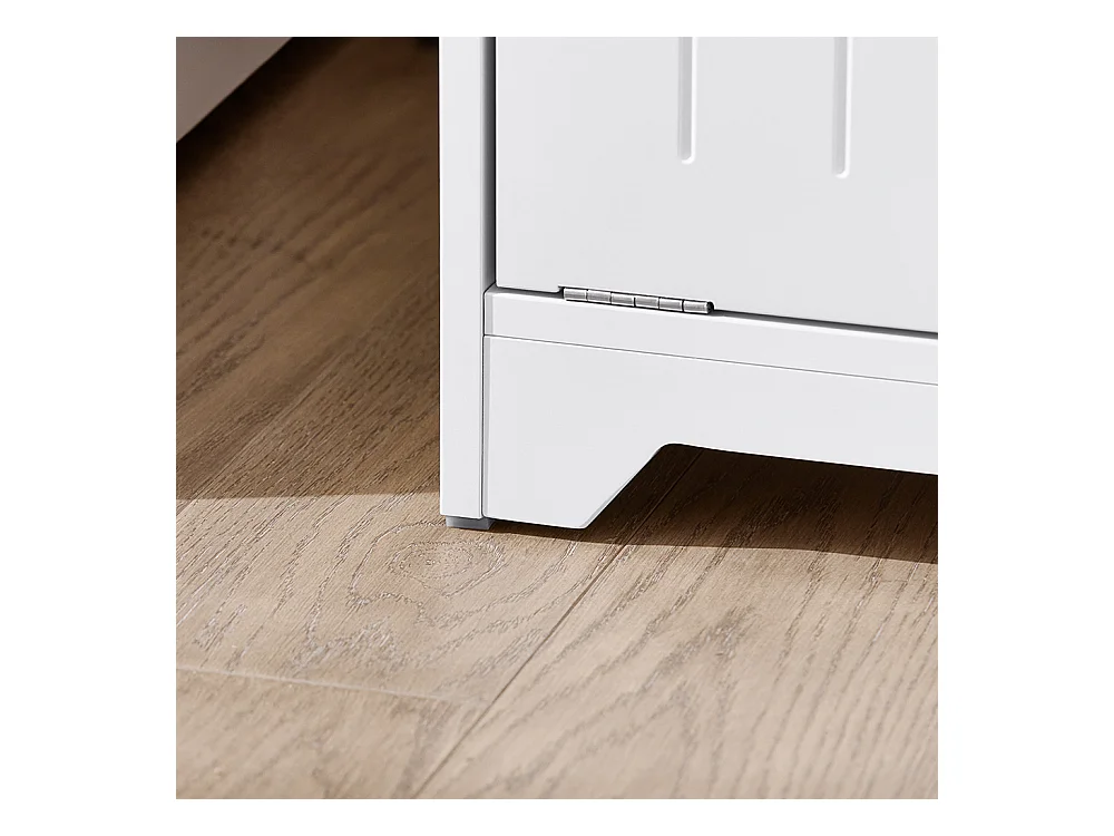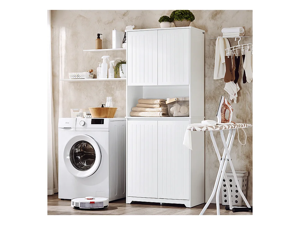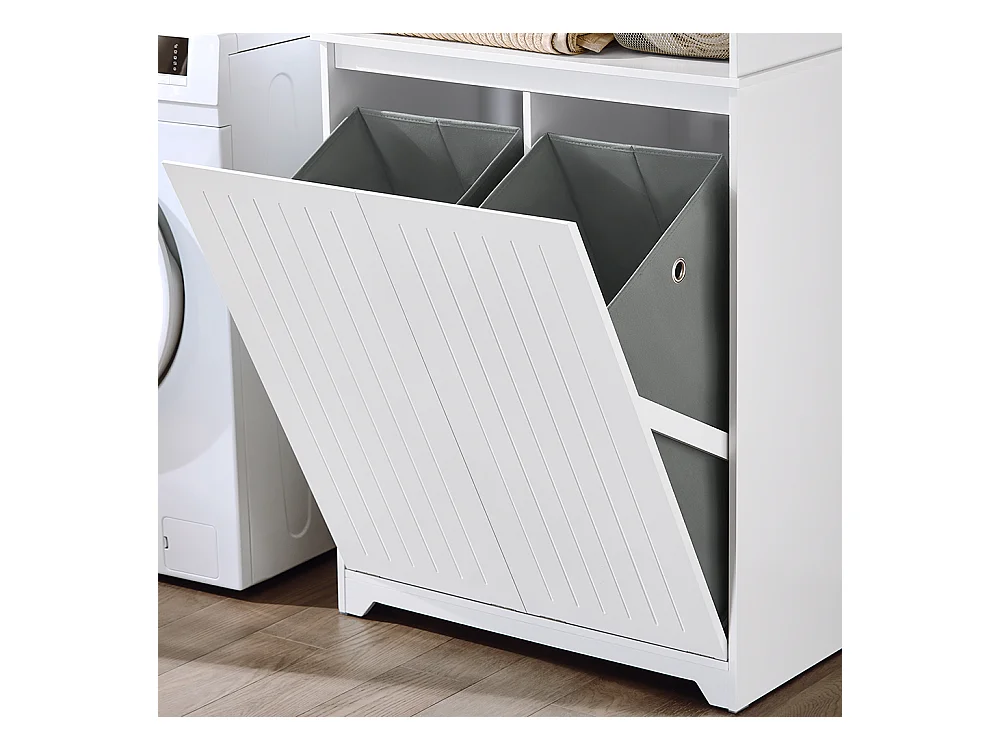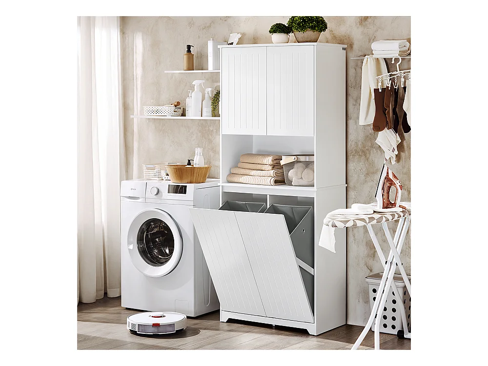 SoBuy BZR150-W Armoire de Salle de Bain Haute avec Sac à Linge, 2 Paniers à Linge Amovibles, Étagères Réglables, Compartiments