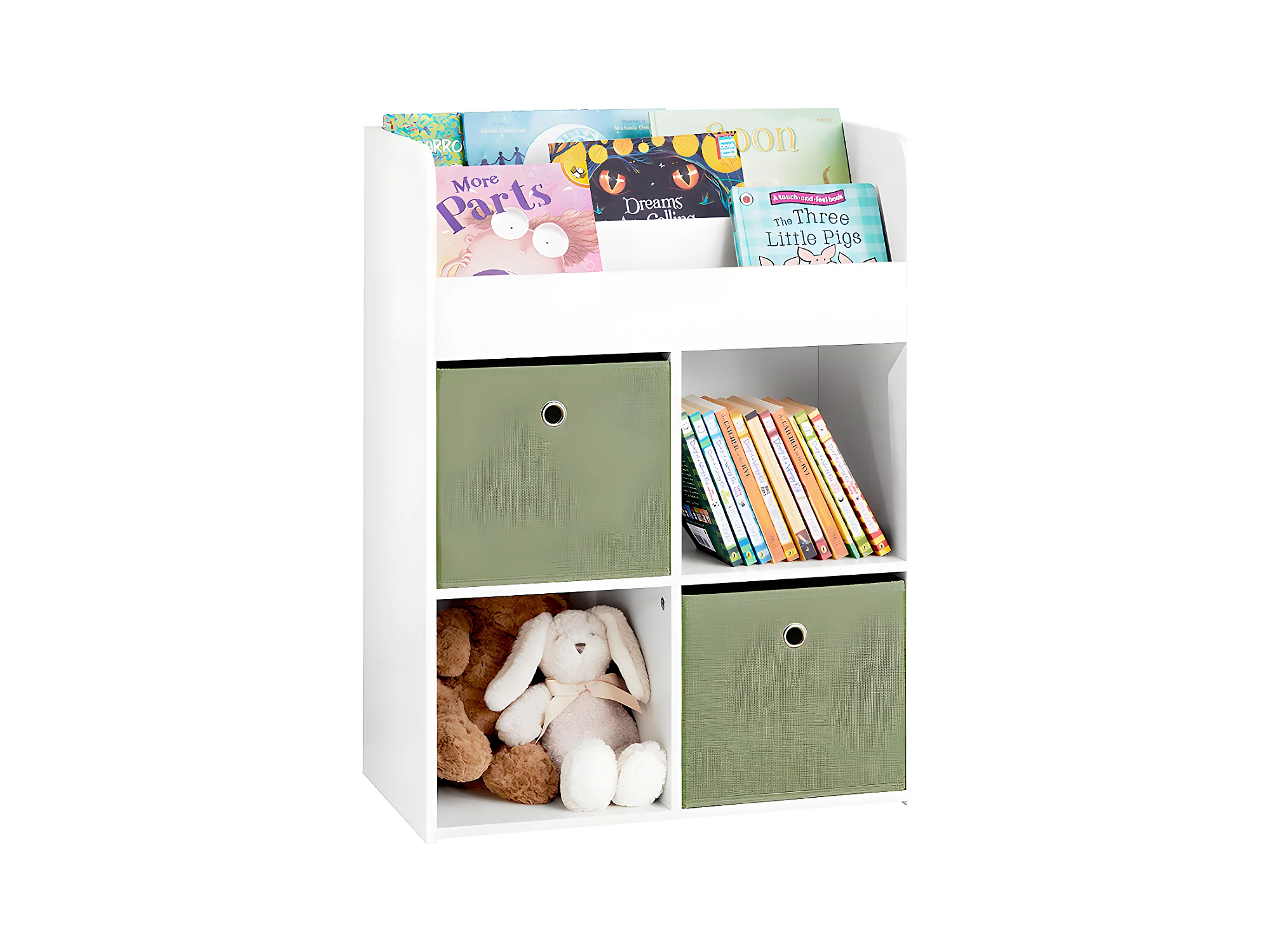 SoBuy KMB79-W Bibliothèque pour Enfant, Étagère de Rangement pour Jouets et Livres, 3 Étagères, 4 Compartiments et 2 Boîtes de Rangement