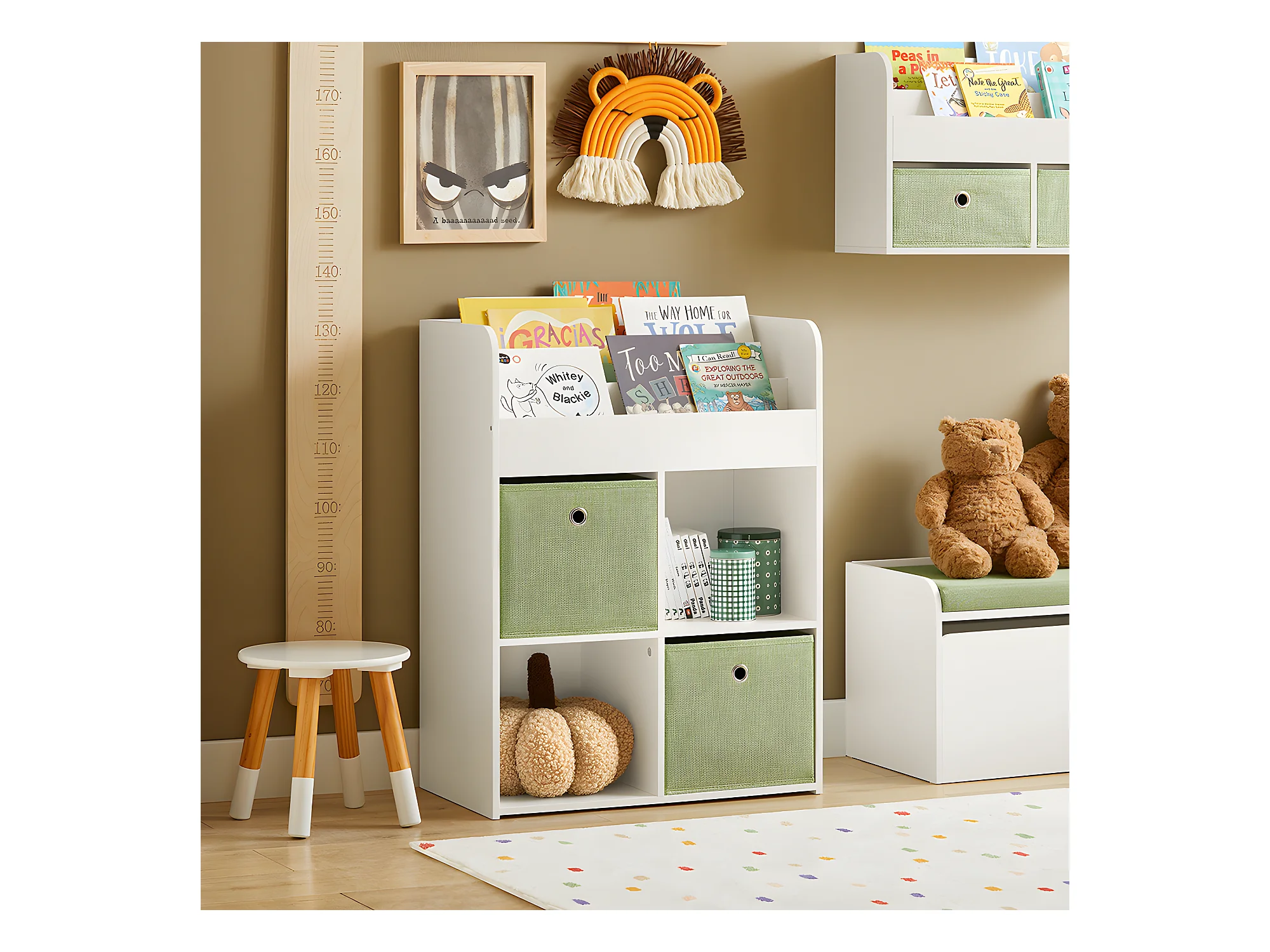 Bibliothèque pour enfants, avec 5 compartiments et patins antidérapants, 111 x 30 x 61,5 cm