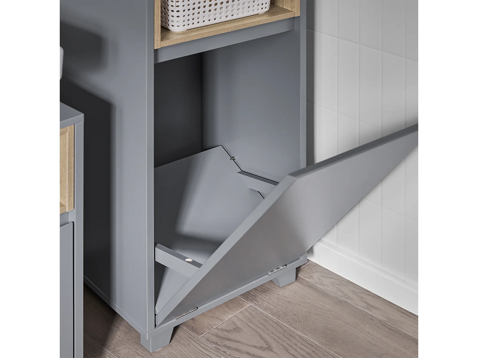 Panier à linge avec une seule section bambou gris