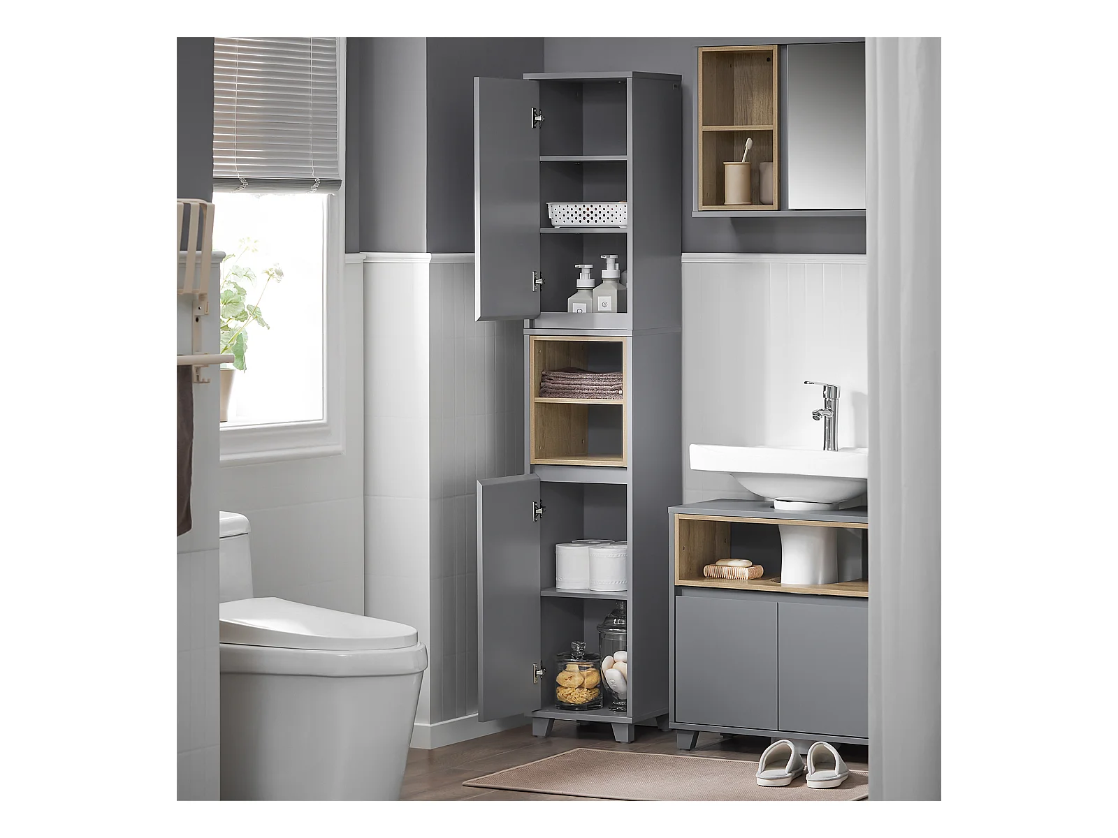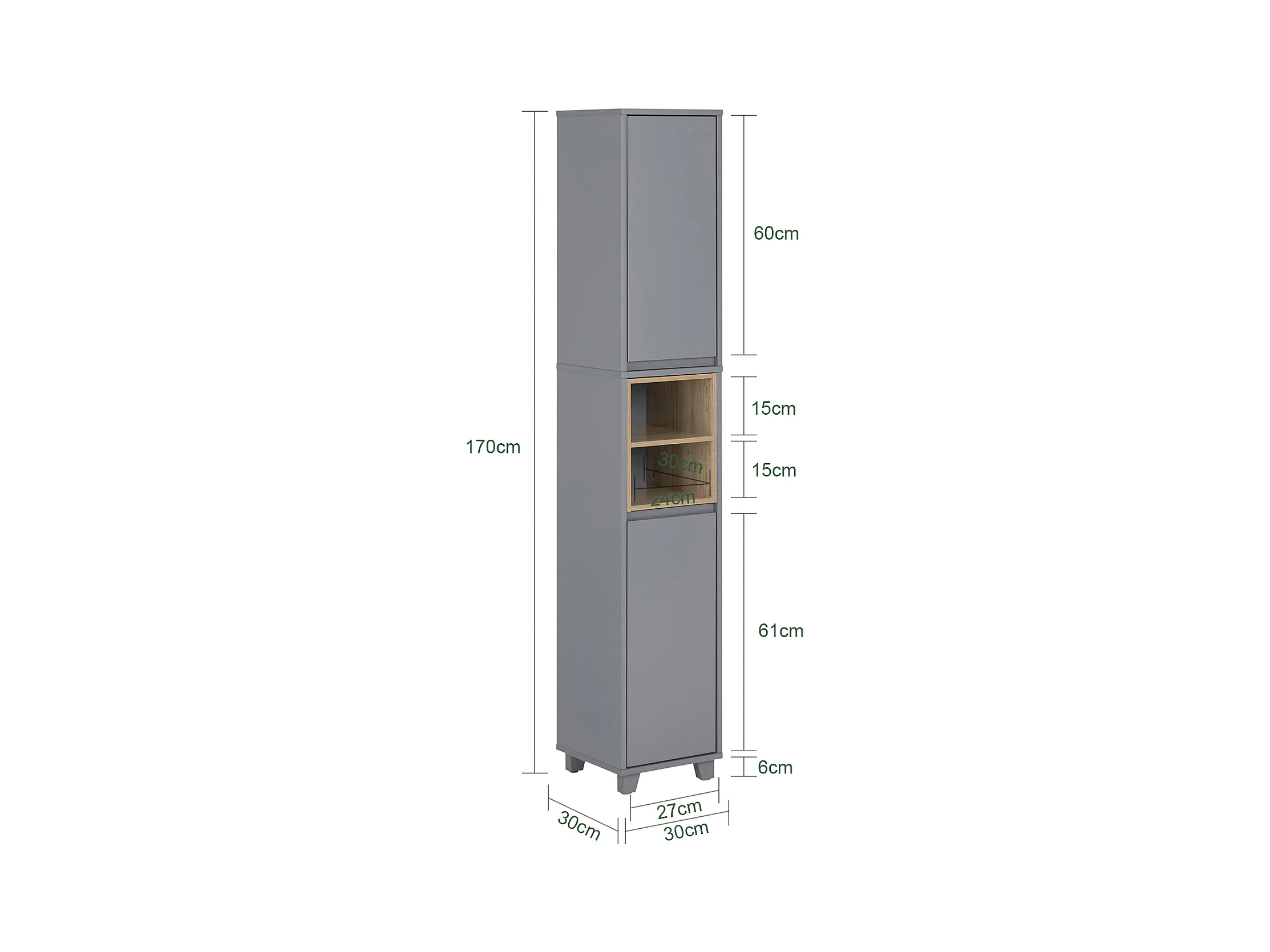 SoBuy BZR147-DG Meuble Colonne Armoire de Salle de Bain Étagère Étroite Meuble de Rangement Salle de Bain avec 2 Portes et 2 Compartiments, 30 x 30 x 170 cm, Gris