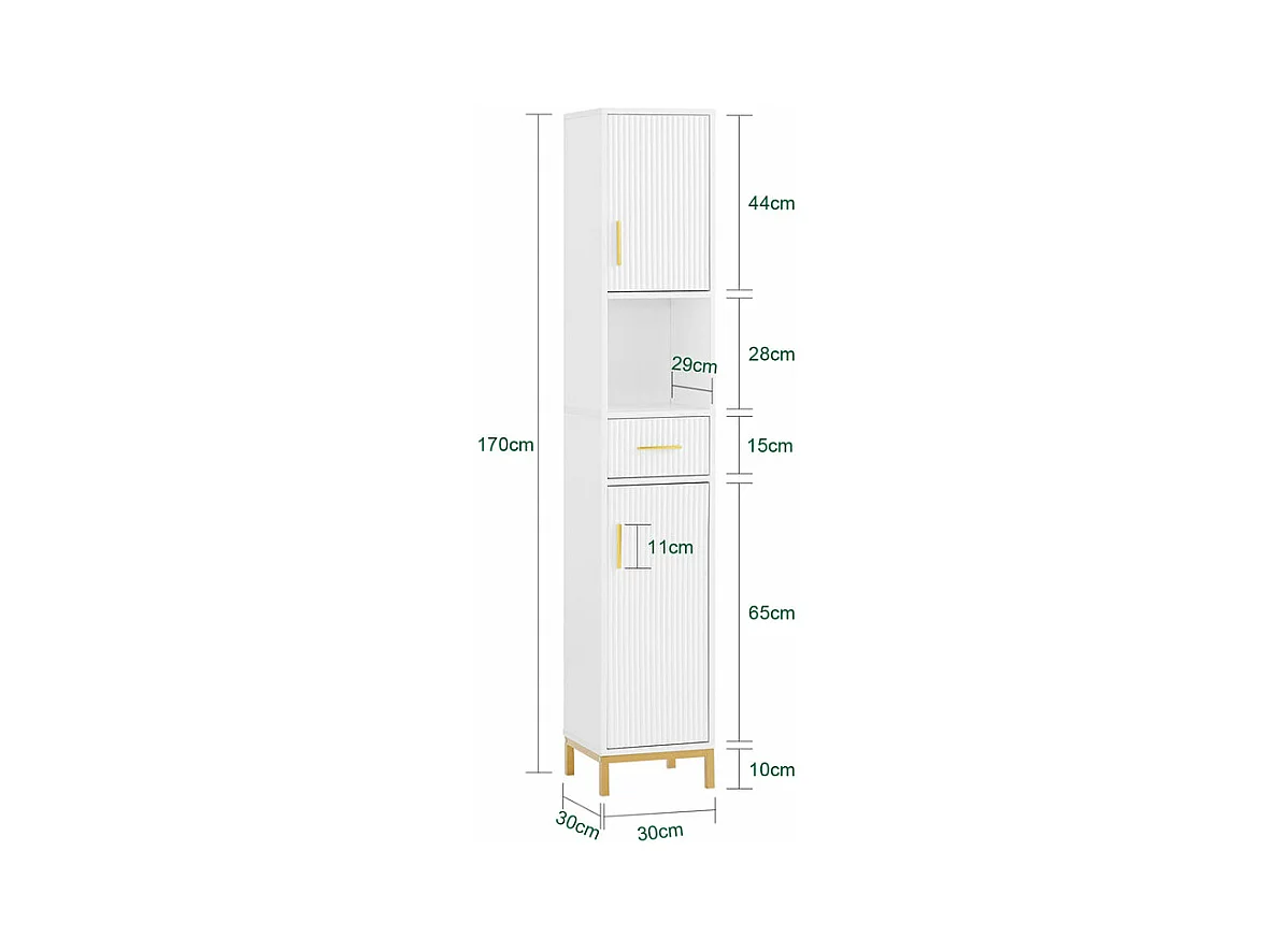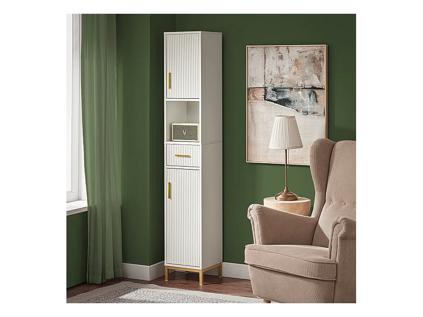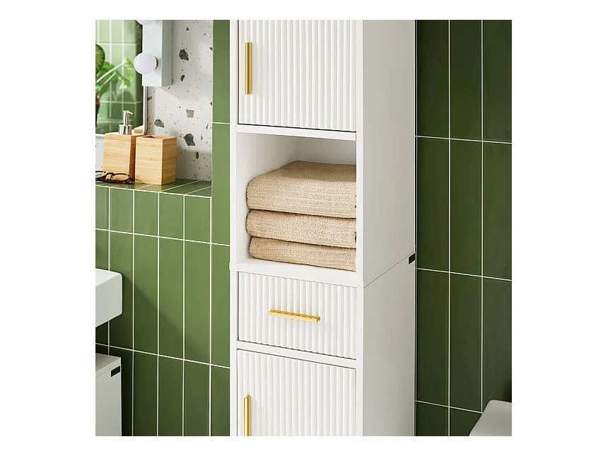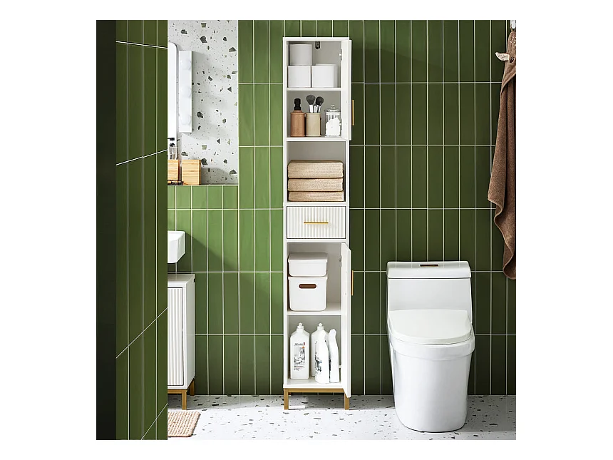 SoBuy BZR181-W Meuble Colonne Salle de Bain, Armoire de Rangement Placard de Rangement Étroite, 1 Compartiment Ouvert, 1 Tiroir et 2 Portes, Blanc