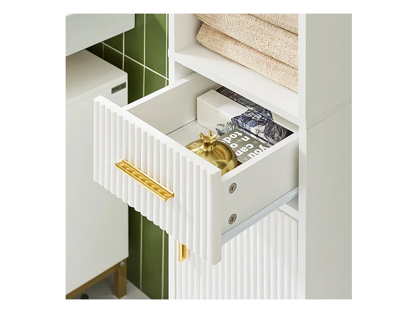 Meuble Colonne de Salle de Bain Armoire Toilette haute 4 étagères et 2 tiroirs Blanc, FRG126-W
