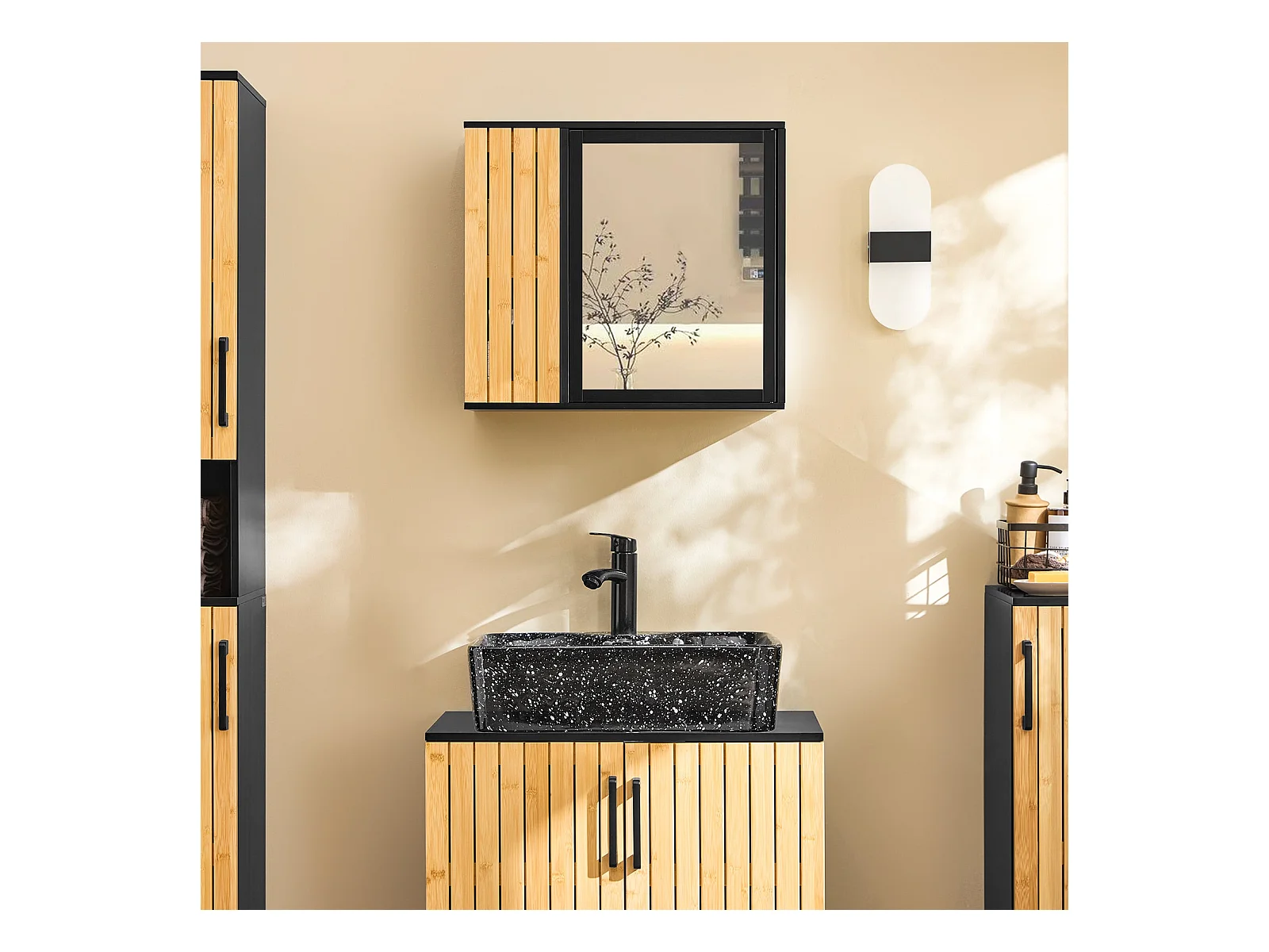 Armoire de salle de bain à miroir LED noir 50x14x60 cm FR18766